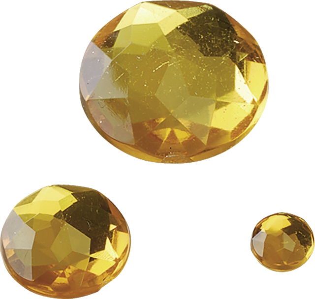 Fiecare set conține 100 de cristale acrilice de culoare chihlimbar, disponibile în 3 dimensiuni diferite (Ø 6, 12, 18 mm). Cu un aspect facetat și rotund, aceste cristale adaugă un efect vizual atrăgător și elegant proiectelor dumneavoastră.