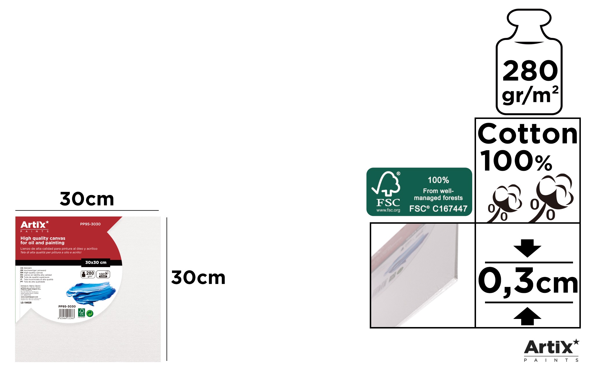 Panza folosita a fost tratata cu grund si pH neutru fiind astfel ideala pentru picturi in ulei, tempera, acrlic, guase, etc.