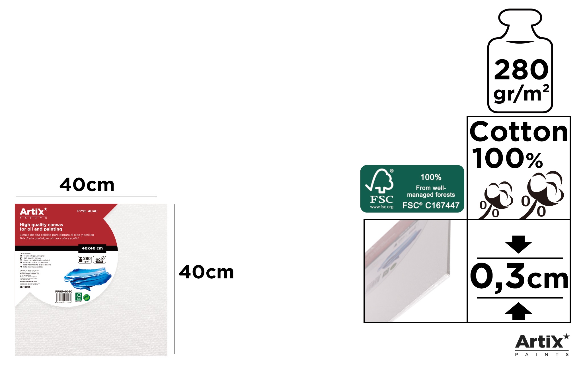Panza folosita a fost tratata cu grund si pH neutru fiind astfel ideala pentru picturi in ulei, tempera, acrlic, guase, etc.