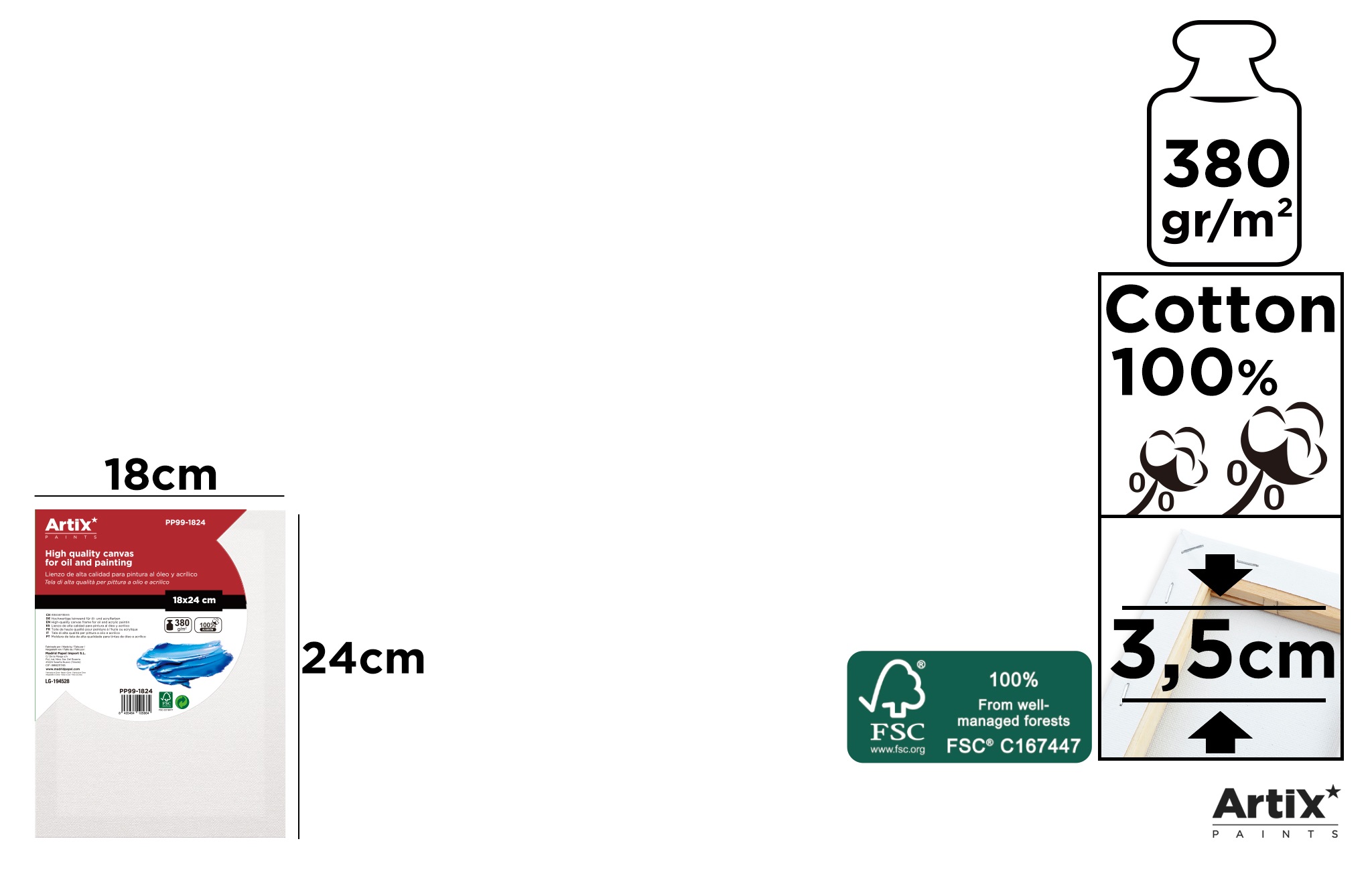 Panza este confecționată dintr-un material profesional de cea mai înaltă calitate, având o densitate de 380 g/m² și fiind realizată din 100% bumbac. Este tratată cu trei straturi de grund alb, ceea ce facilitează alunecarea pensulei și conferă un finisaj profesional și uniform.