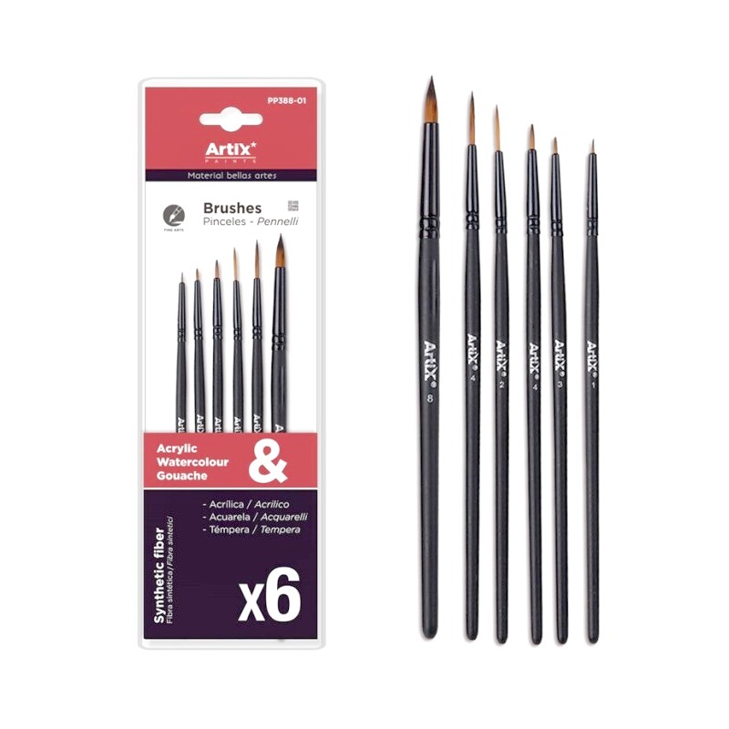 Set pensule profesionale, din par sintetic, cu varf liner sau rotund si coada scurta, Artix. Pensule rezistente potrivite pentru majoritatea tehnicilor de pictura, de la culorile acrilice, pana la acuarele, tempera sau guase. Acest tip de pensule sunt ideale pentru trasarea unor linii fine, groase - subtiri, permite realizarea de detalii, retusuri finale sau umplerea suprafetelor mici. Setul contine 4 pensule rotunde marimile 1, 3, 4, 8 si 2 pensule liner marimile 2, 4. Pretul se refera la un set de 6 pensule.