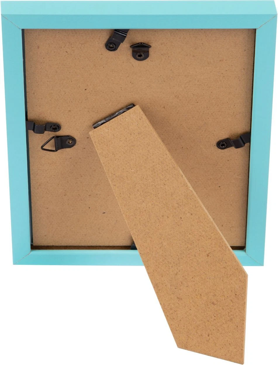 🎞️ Ramă foto din lemn turcoaz cu suport pentru plasare pe masă sau agățare pe perete, oferind un aspect plin de culoare și prospețime