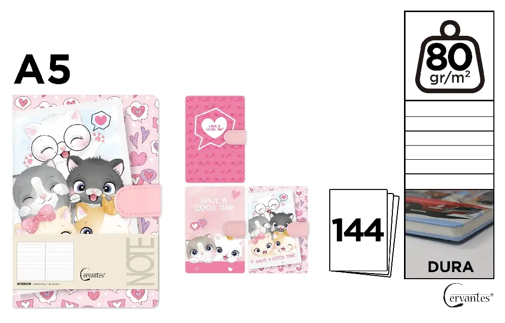 Notă pentru caietul de notițe IPB A5 cu 144 file, model "Pisici" cu clapă magnetică PB475-53 – ideal pentru notițe, școală sau birou, având un design adorabil cu motive cu pisici.