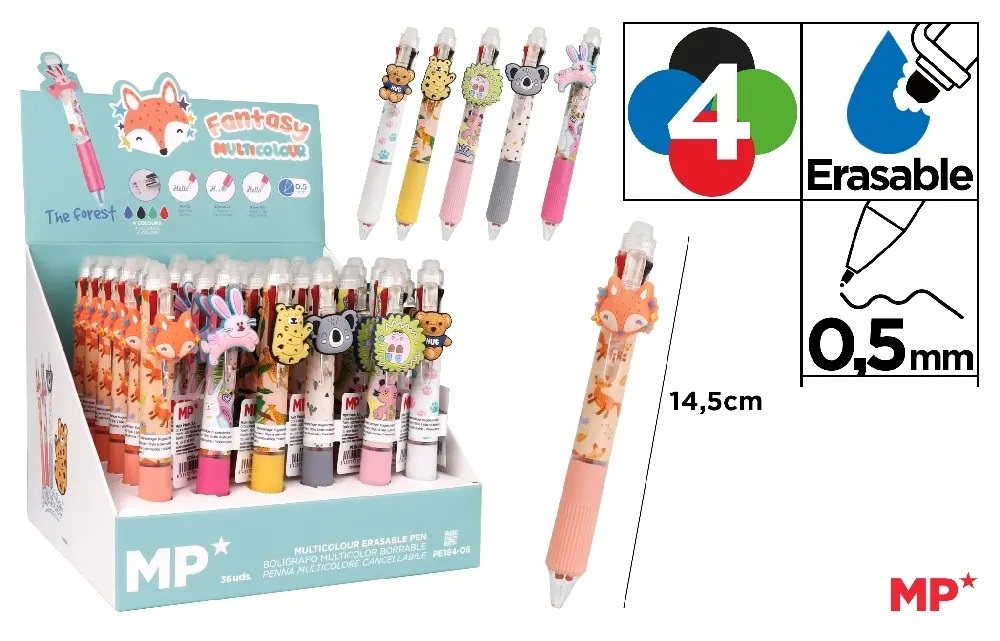 Pix cu radieră IPB 0.5mm 4 culori The Forest PE184-06 – perfect pentru notițe și corecturi rapide!