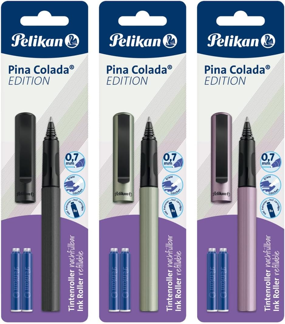 🖊️ Roller Herlitz Pina Colada Edition cu corp striat și nuanțe metalizate în culori la modă: mov, verde olive și antracit, inspirate din tendințele modei moderne