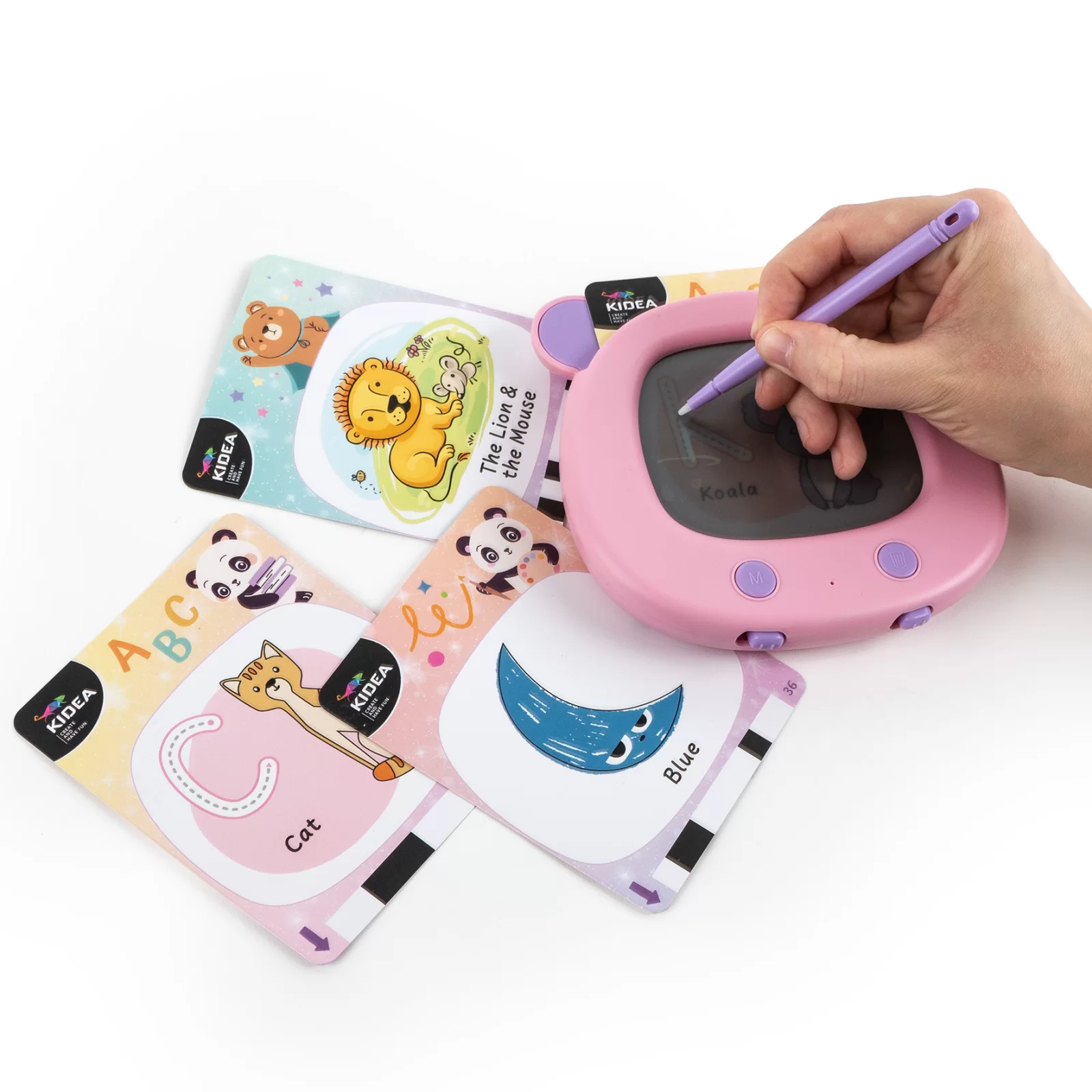 Această tabletă interactivă vorbitoare cu stylus combină învățarea limbii engleze cu distracția, fiind un instrument ideal pentru a introduce copiii în vocabularul de bază și pentru a le dezvolta creativitatea.