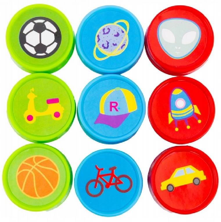 Specificatii: Set 9 ștampile auto-tușante, Gamă Boys, Parfum fructat, Utilizare pe hârtie și carton