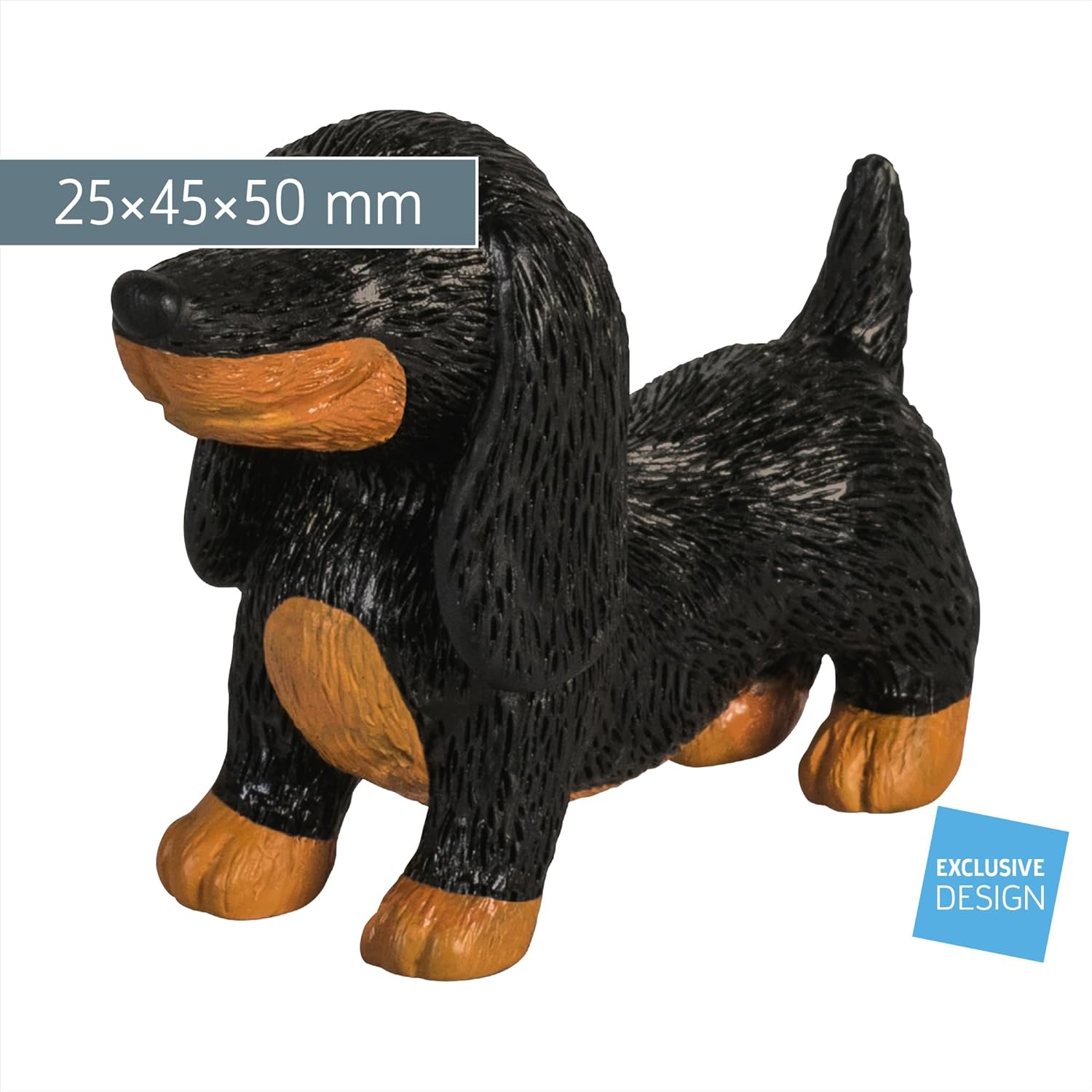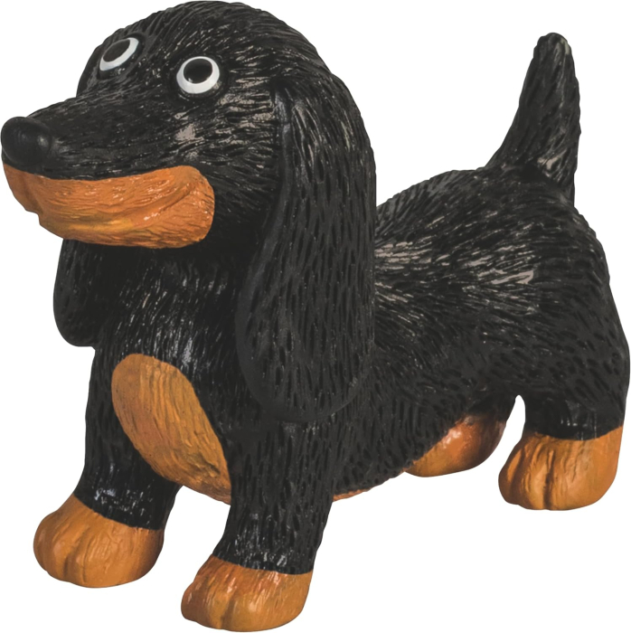 Specificatii: Model 3D câine Teckel (Dachshund), Material plastic TPR (fără PVC), Dimensiuni 25x45x50 mm, Culoare negru
