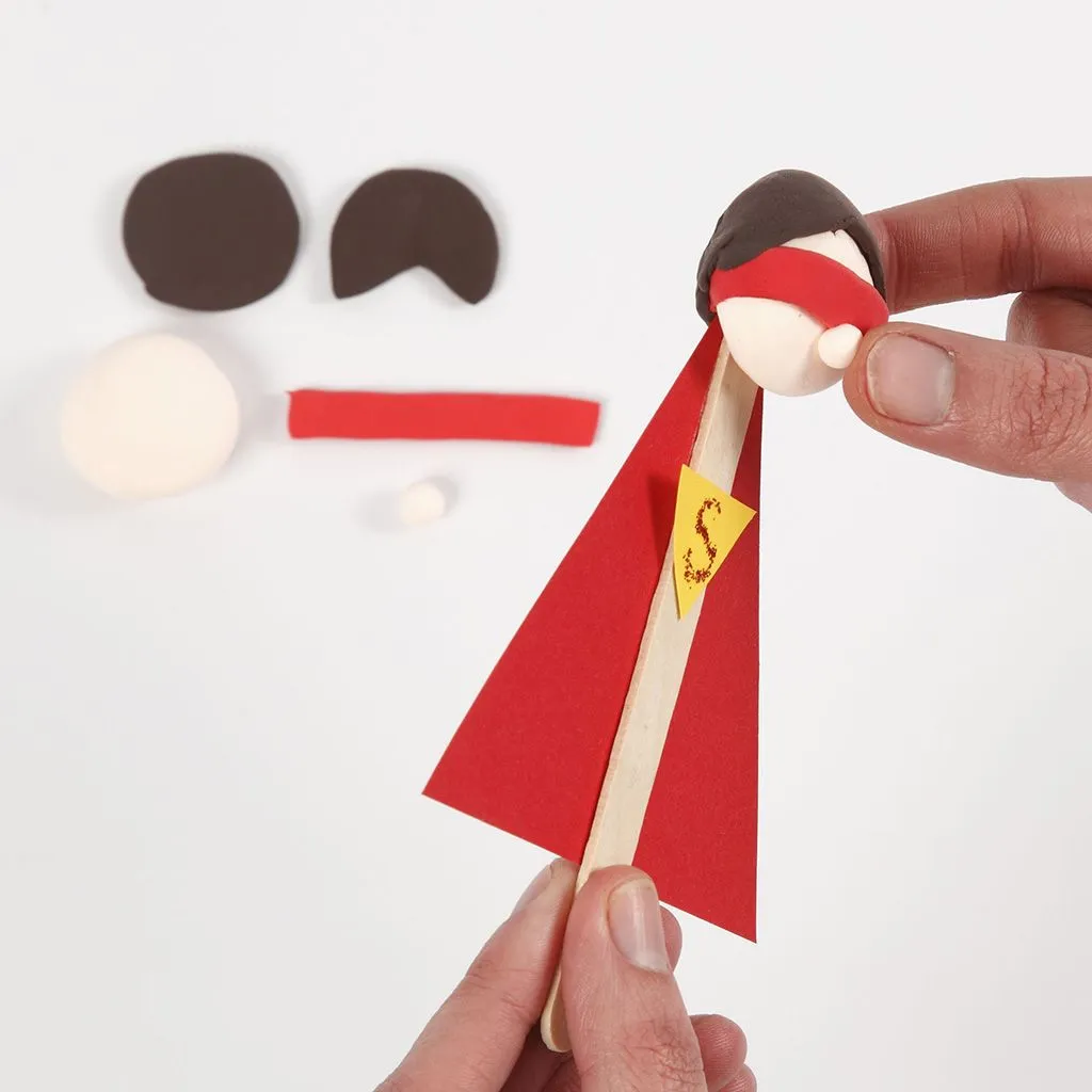 ✨ Include 3 foi de carton, Silk Clay în 3 culori, bețișoare pentru înghețată, ochi mobili și lipici cu sclipici pentru decorare.