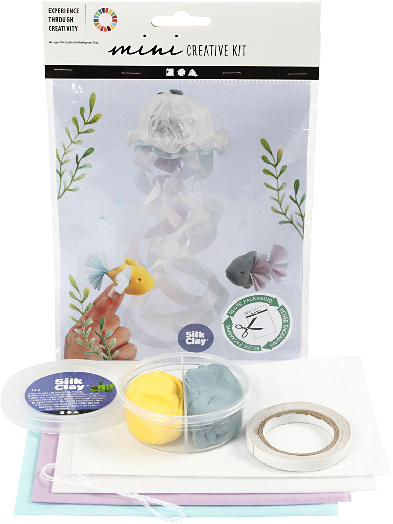 🦀 Kit creativ pentru realizarea unui pește și a unei meduze din Silk Clay și hârtie tissue, ideal pentru dezvoltarea imaginației și a dexterității (977363)