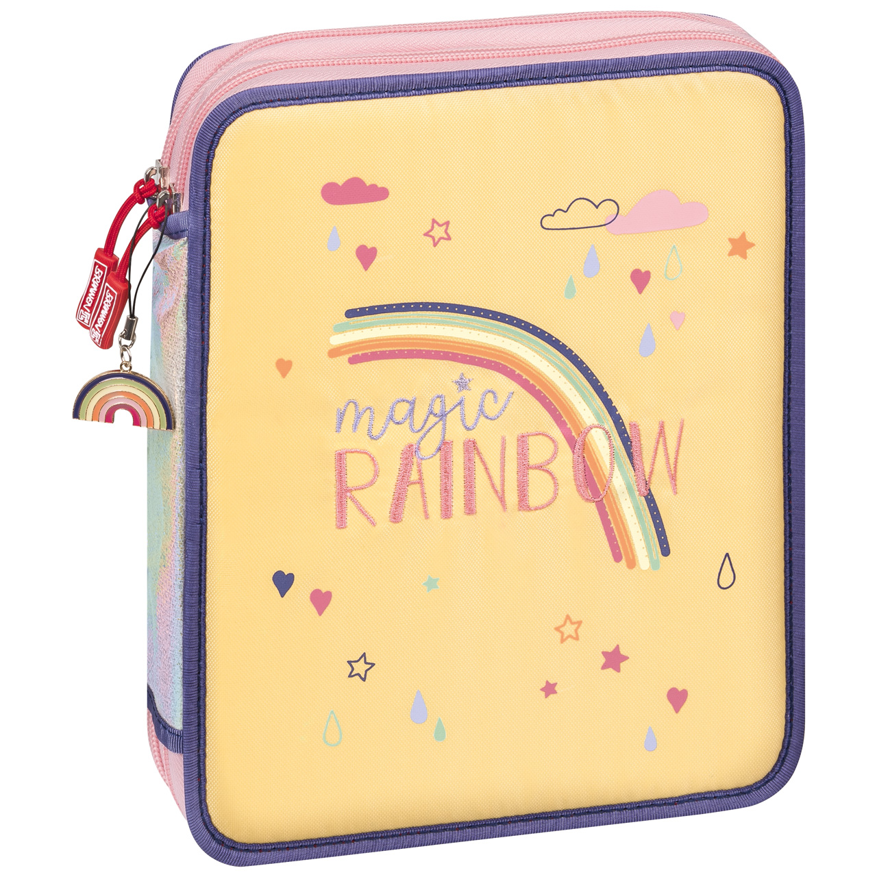 Penarul Brunnen XXL cu motivul curcubeu Magic Rainbow inspiră fetele din școala primară și preșcolară. Penarul cu două etaje (2 nivele) cu pandantivul curcubeu este plină cu 29 de creioane, precum și o riglă, foarfece, ascuțitoare și radieră. Creioanele colorate jumbo triunghiulare, creioanele subțiri colorate de la Lyra și creioanele într-o cutie de elev asigură un început bun la școală. Fermoarele sunt foarte robuste, astfel încât nimic nu se poate pierde. Detalii produs: Carcasă cu două clape (2 niveluri) Motiv curcubeu de înaltă calitate Magic Rainbow 18 creioane colorate subțiri triunghiulare Lyra 9 creioane colorate jumbo triunghiulare groase de la Lyra 1 creion triunghiular gros 1 creion subțire triunghiular Radieră în negru 2 fermoare cu pandantiv curcubeu 20x25x4.5 cm