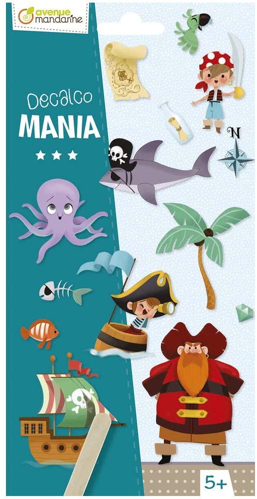 Avenue Mandarine CC049C - Set Decalco Mania care include 2 foi de decalcomanii, Pirate Avenue Mandarine este un brand francez de jocuri educative aparținând grupului Clairefontaine Rhodia. Desene delicate și culori strălucitoare care vor sublima lucrările copiilor tăi. Modele colorate, originale, care vor mulțumi copilul dumneavoastră. Instructiuni Pas cu pas incluse. Conform standardelor CE - De la 5 ani. Conține 2 plăci cu aproximativ 20 de transferuri fiecare și un baston. Poziționați modelul în locația dorită (foaia de plastic transparentă vă permite să o poziționați bine). Frecați ușor cu bețișorul, ridicați ușor foaia de plastic și voilà, modelul este acum pe foaia dvs.