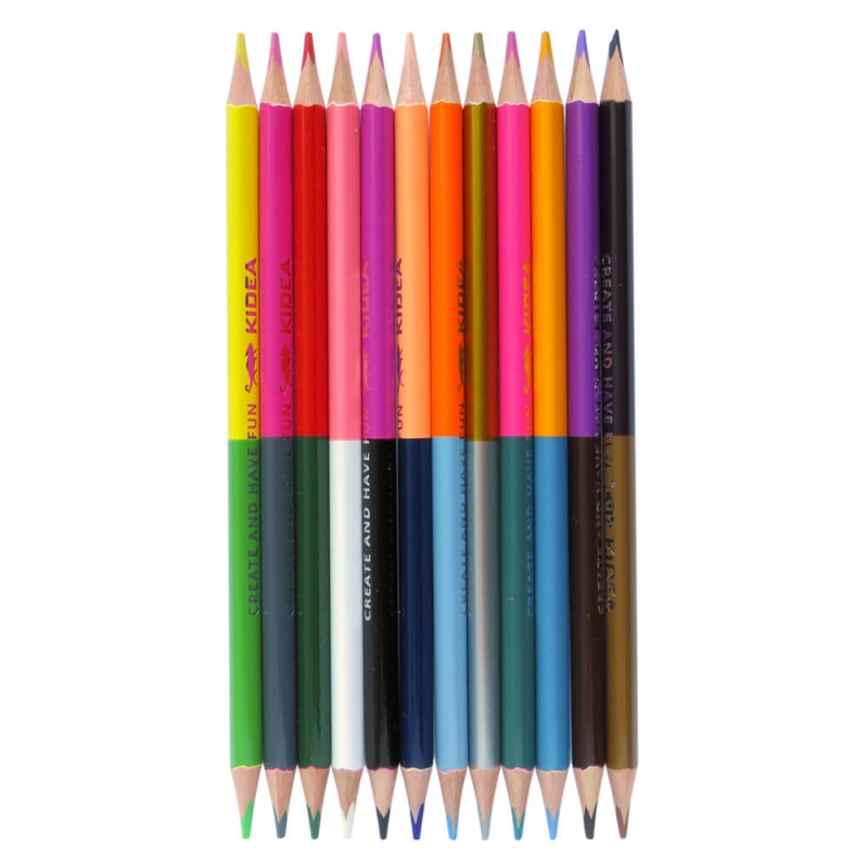 Creioane Colorate Triunghiulare 2 Capete 12/Set Kidea Ktd24kka