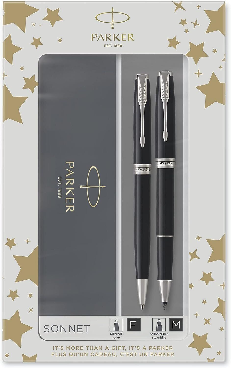 PARKER SET SONNET DUO ROLLER + PIX CT, BLACK AND SILVER 160398