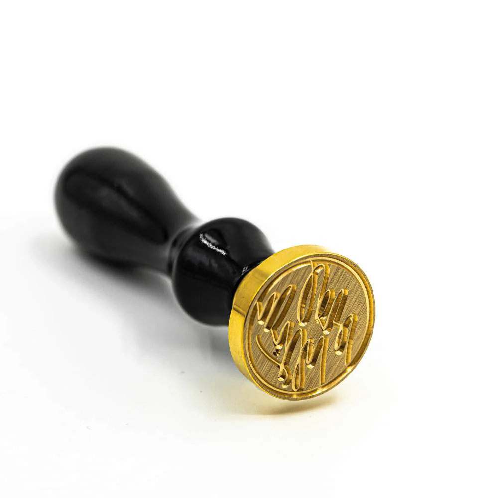 4. Ștampilare: Aplică ștampila de alamă "With Love" și apasă ușor. Așteaptă 10-15 secunde, apoi ridică ștampila pentru a dezvălui sigiliul perfect.