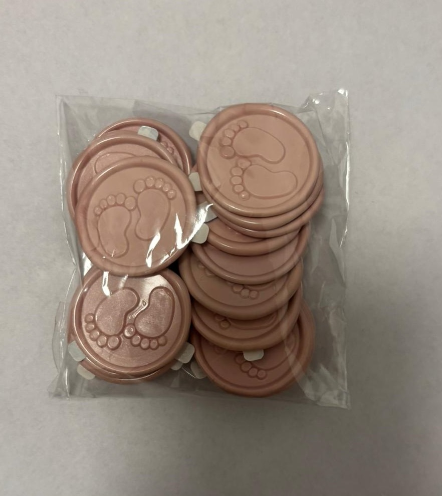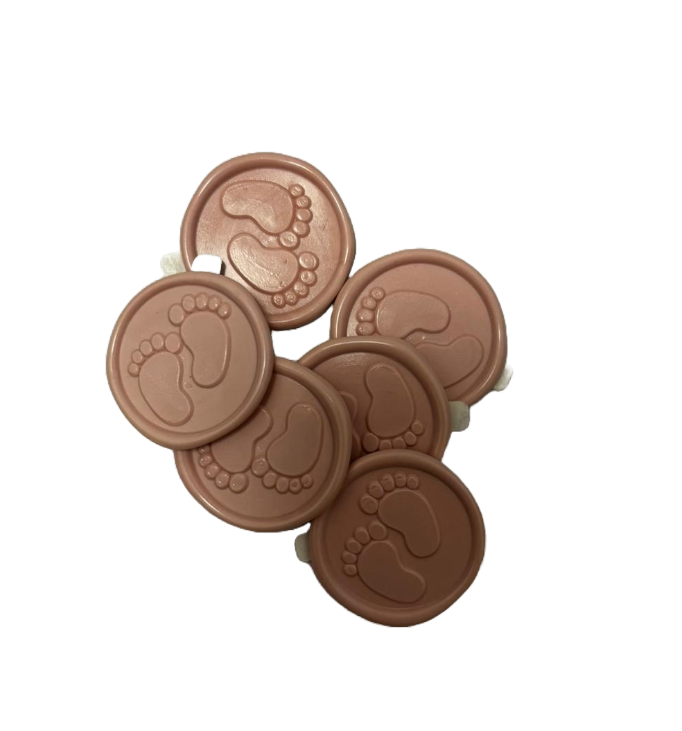 Fiecare sigiliu este realizat cu o precizie deosebită, având simbolul central al piciorușelor de bebeluș, oferind un relief clar și un aspect premium.