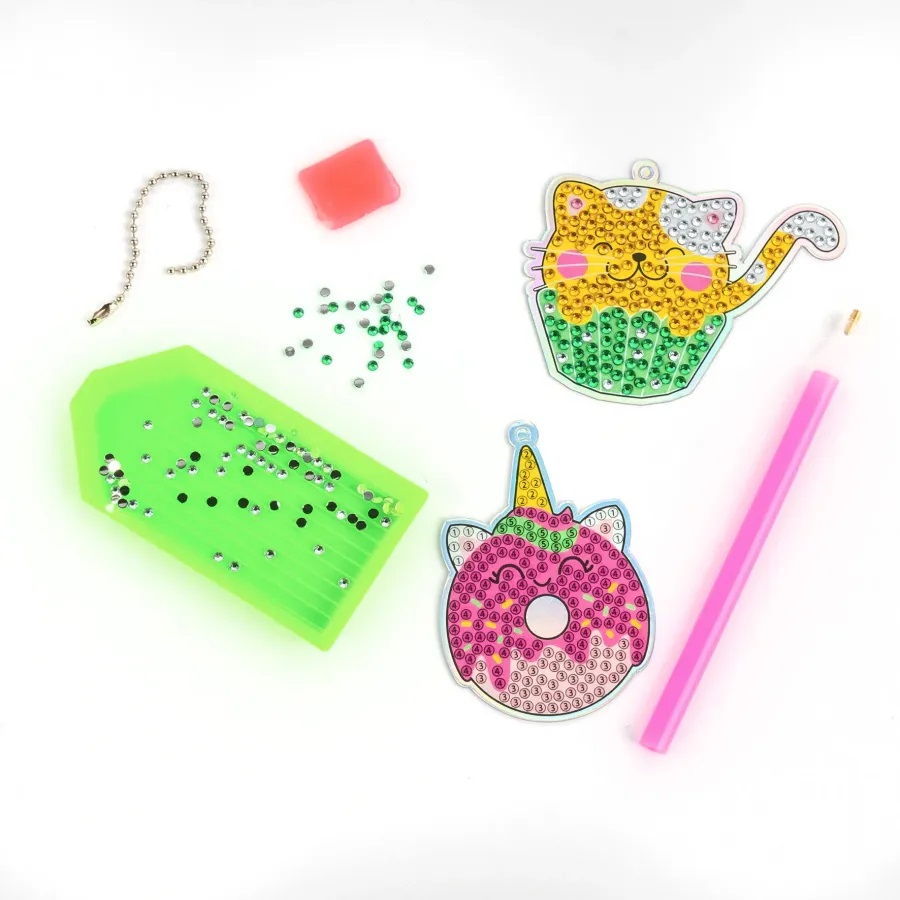 Kit Kreativ Pandantive cu Diamante în 5 Culori Dulciuri Kidea DZRSKA îți oferă ocazia perfectă de a adăuga un strop de strălucire ținutei tale cu aceste pandantive adorabile. Urmează instrucțiunile numerice și creează-ți propria suspensie a unui animal de companie dulce, împodobită cu diamante strălucitoare în cinci culori: argintiu, roz închis, roz deschis, auriu și verde.