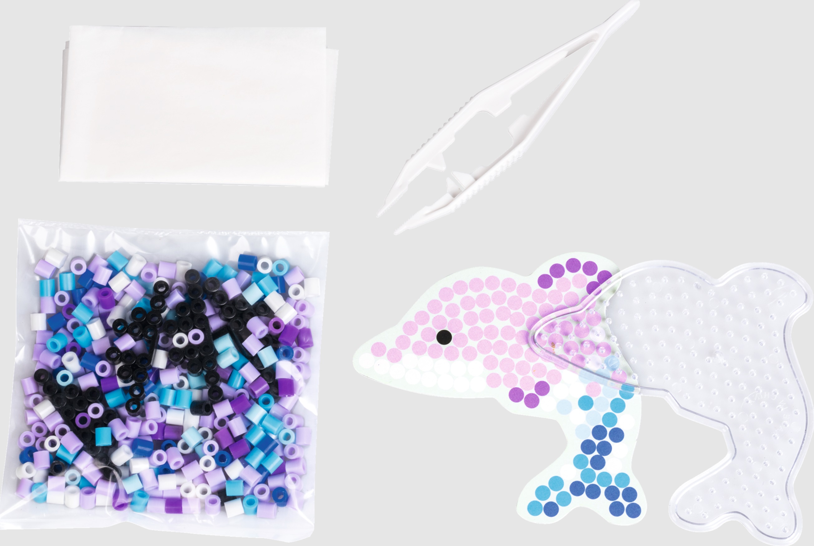 Etichete: cutie de carton, Material: Plastic, sablon, Dezvoltare motorie, Activitate distractivă, Dimensiuni: 150 × 220 × 20 mm, Conținut: margele termoadezive, placă de lucru, pinzetă, hârtie de călcat, Răbdare, Fereastră clară, Euro slot, Concentrație, Delfin din margele termoadezive, set creativ