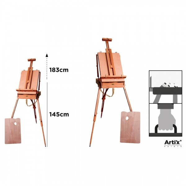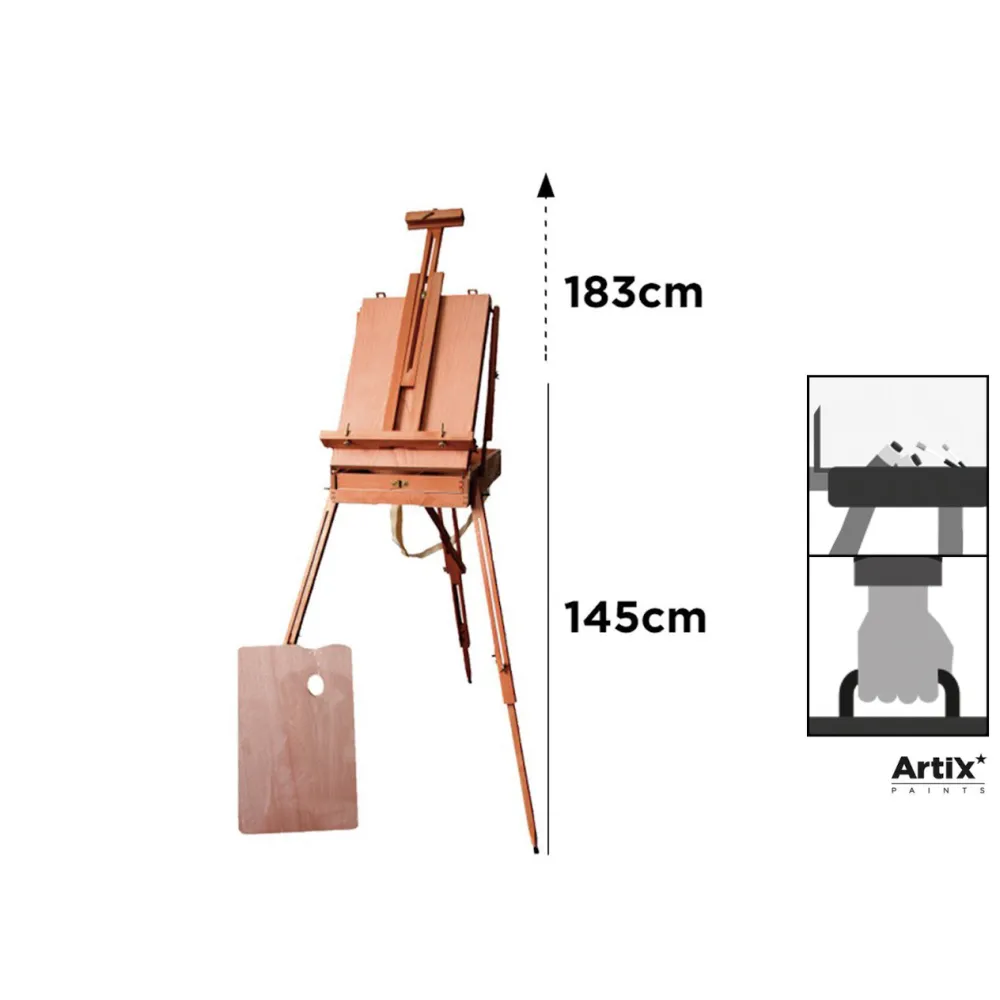 Etichete: pictura, Pliabil, trepied, stabilitate, Ușor de transportat, panze, arta, lemn IPB, instrumente de lucru, pictori, sevalet francez, sertar, paletă de amestec, reglabil în înălțime, dimensiuni ajustabile, experiență practică, creativitate, Rezistență