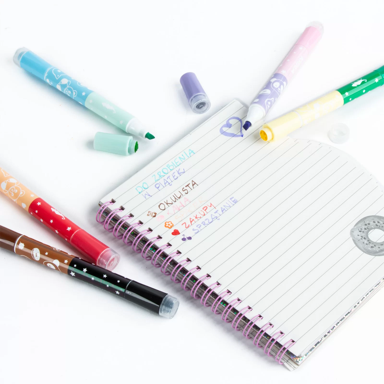 🎨 Set de 10 markere față-verso, fiecare cu două vârfuri colorate și ștampile originale cu modele drăguțe, pentru o varietate de creații