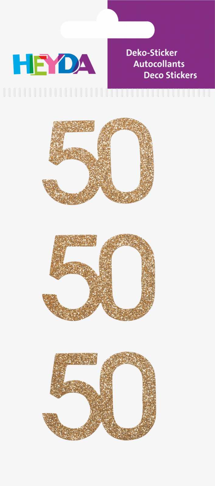 Descoperă setul KP STICKER DECOR 7.5*16.5CM NR. 50 AURIU GLITTER 3 PCS 3780741 de la Heyda, ideal pentru a adăuga un strop de eleganță și strălucire oricărui proiect creativ!