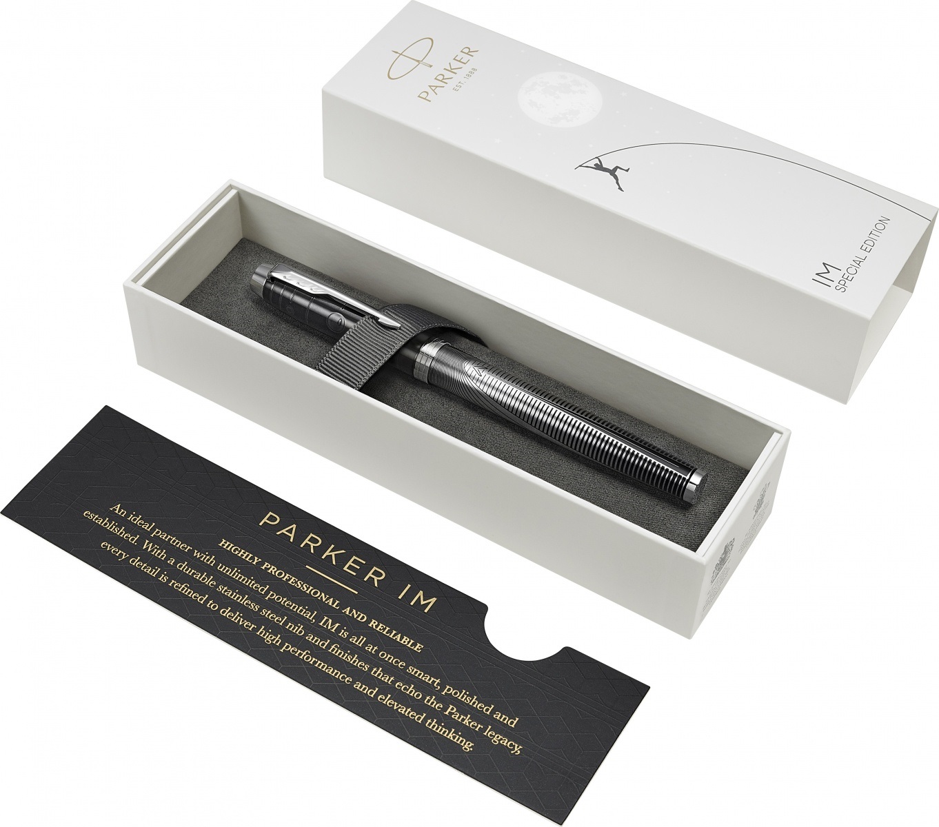 Colectia Moon, lansata in 2019 pentru impatimitii calatoriilor, spre a le reaminti magia oricarei calatorii, pe pamant, pe ape, la luna sau la stele, cu fapta sau cu gandul. Colectie lansata pentru a ne bucura ochii si a ne ajuta sa ne impartasim gandurile, emotiile, bucuria si descoperirile. IM in traducere libera inseamna "eu sunt". Eu sunt un fan Parker, eu sunt Parker, eu reprezint Parker. Si toate acestea se intampla din anul 2009, anul cand a fost lansata aceasta gama. IM, fara rezerve te pune in fata unui "scriitor" modern, simplu, fiabil si de calitate ce combina in mod natural functionalitatea cu eleganta, oferind o experienta aparte plina de incredere si de confort la scriere. Forma sa moderna se defineste prin linii clasice drepte, simple, bine conturate, ce incanta ochiul inca de la prima vedere. La randul lor, simturile dumneavostra tactile sunt rasfatate de finisajele de calitate, pline de finete, lucire si rafinament ce le regasim la IM. Fiecare detaliu ne convinge de seriozitatea si abordarea profesionala a celor de la Parker cand este vorba de faurirea unui nou instrument de scris. La urma urmei "furnizorii casei regale britanice" nu ne ofera doar un simplu "scriitor". Ei ne pun in fata unui "partener" plin de personalitate cu un potential aproape nelimitat de a ne inspira, a ne tenta si a ne provoaca in acelasi timp sa ne transferam atat gandurile mintii, cat si creativitatea pe hartie cu ajutorul scrisului. In cazul gamei IM producatorul s-a focusat pe satisfacerea totala a utilizatorului, utilizand toate ingredientele retetei de succes acumulate in cei peste 125 de ani de experienta continua in domeniul producerii si distribuirii in toata lumea a instrumentelor de scris de lux. Datorita raportului excelent pret-calitate-functionalitate-"prezenta scenica", IM este un produs extrem de apreciat fiind unul din preferatele incontestabile ale pietii. Indragit in special de generatia tanara, IM se afla in topul vanzarilor si al preferintelor, fiind declarat pe buna dreptate de foarte multi utilizatori ca fiind "cadoul accesibil care conteaza". Fara rezerve noi am merge mai departe si am afirma ca IM este mai mult decat un cadou, este o farama autentica a mostenirii Parker, este un Parker. Gama Royal, lansata in anul 2016 pe piata britanica, reprezinta gama clasica refrisata cu elemente decorative, finasaje si ambalaje noi.