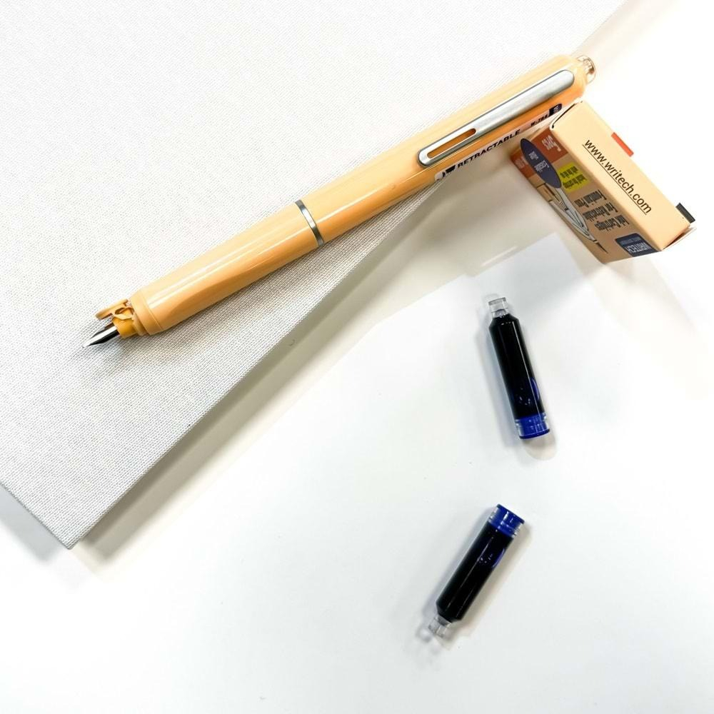 Conținut Pachet: 1 x Stilou Writech W-1784 Portocaliu, 5 x Rezerve de cerneală