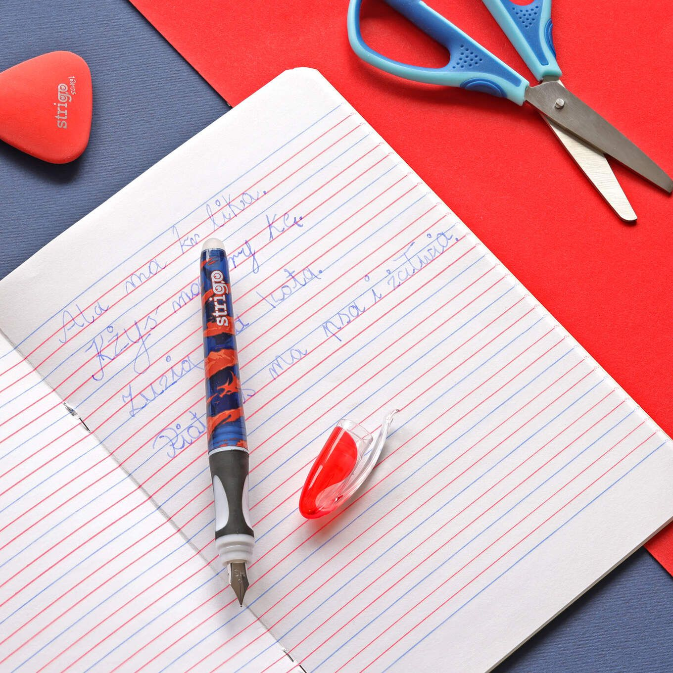 SCR STILOU STRIGO cu ștergere prin frecare și patroane dragon SD-018435 este un stilou ergonomic, ideal pentru copiii care învață să scrie, având un vârf ștergător de înaltă calitate din iridium pentru o scriere lină și durabilă, precum și un mâner cauciucat conturat pentru o poziție corectă a mâinii.