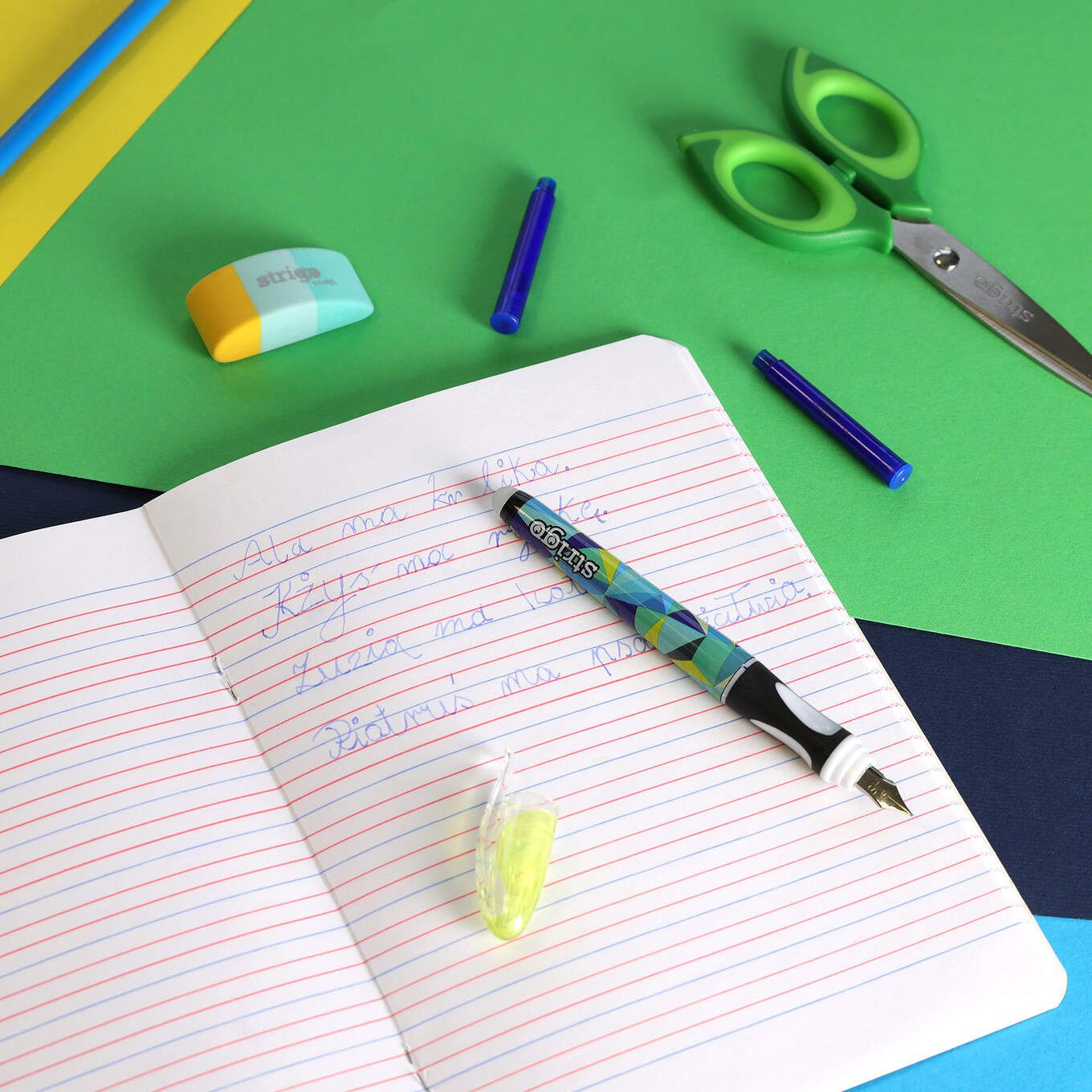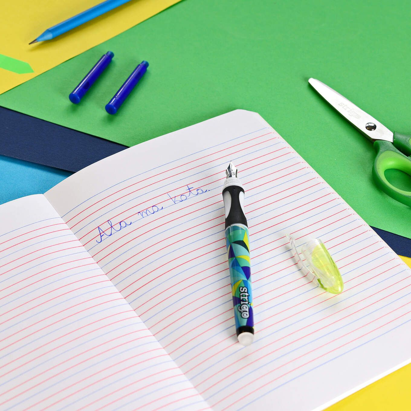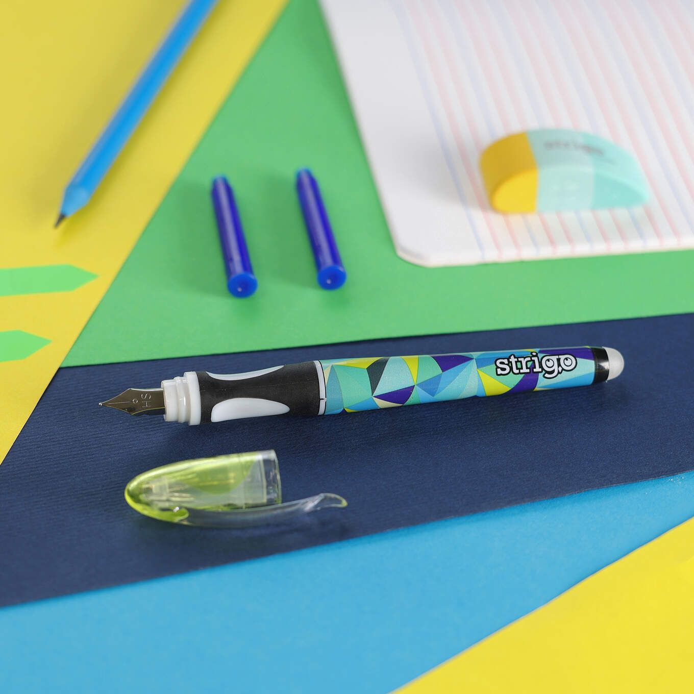 SCR STILOU STRIGO cu ștergere prin frecare și patroane geometrice SD-018436 este un stilou ergonomic, ideal pentru copiii care învață să scrie, echipat cu vârf ștergător din iridium pentru o scriere lină și durabilă, precum și un mâner cauciucat conturat pentru o poziție corectă a mâinii.