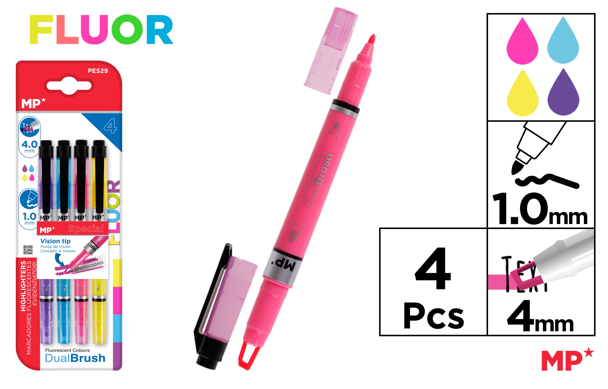 Textmarker IPB Fluo 2 Capete 4/Set Varf 1mm-4mm PE529