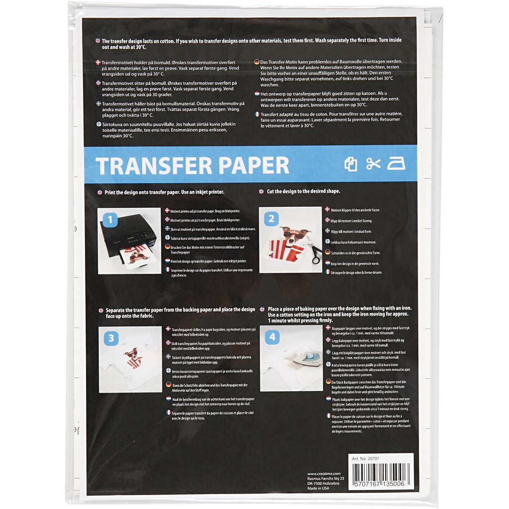Creativ Company CC HARTIE TRANSFER A4 PT CULORI DESCHISE SI INCHISE 20701