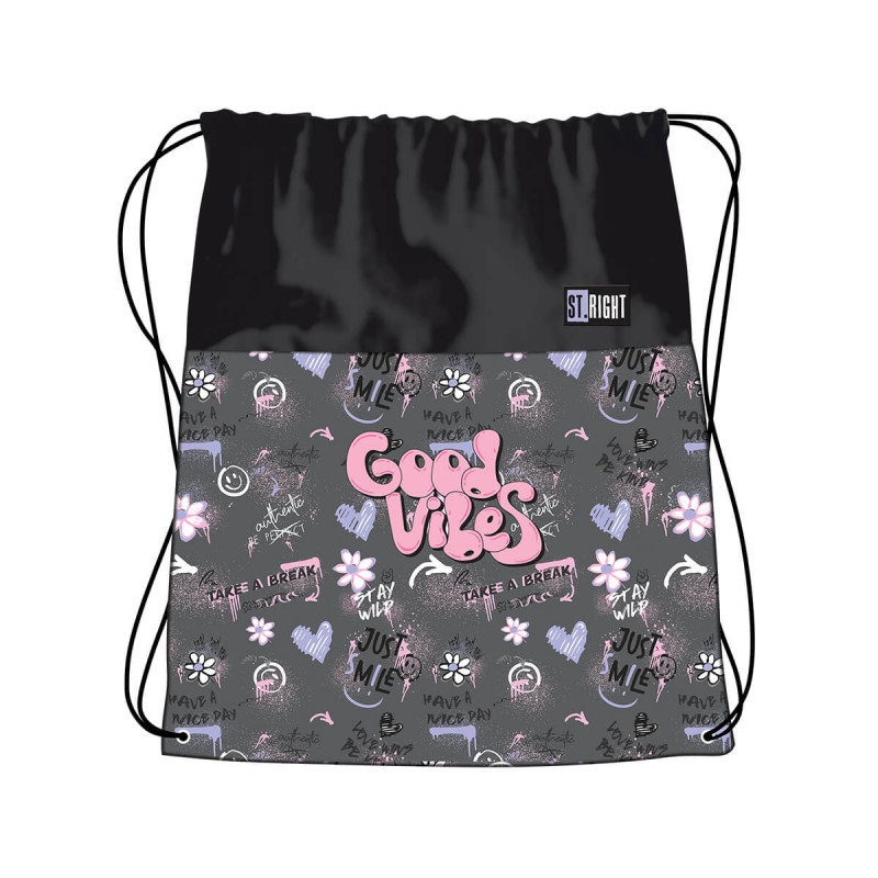 🎒 Sac sport din colecția St.Right Good Vibes, decorat cu un design vibrant și mesaje motivaționale, perfect pentru a aduce o stare de bine în timpul activităților sportive sau zilnice.