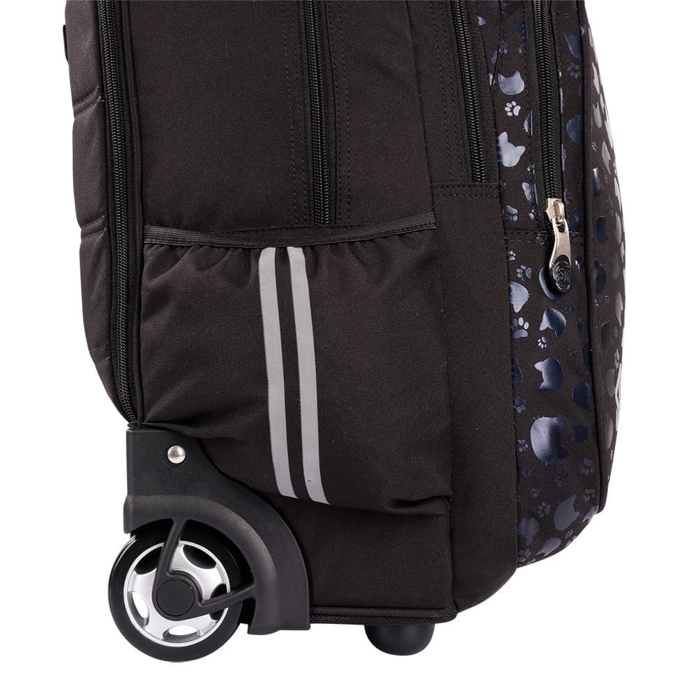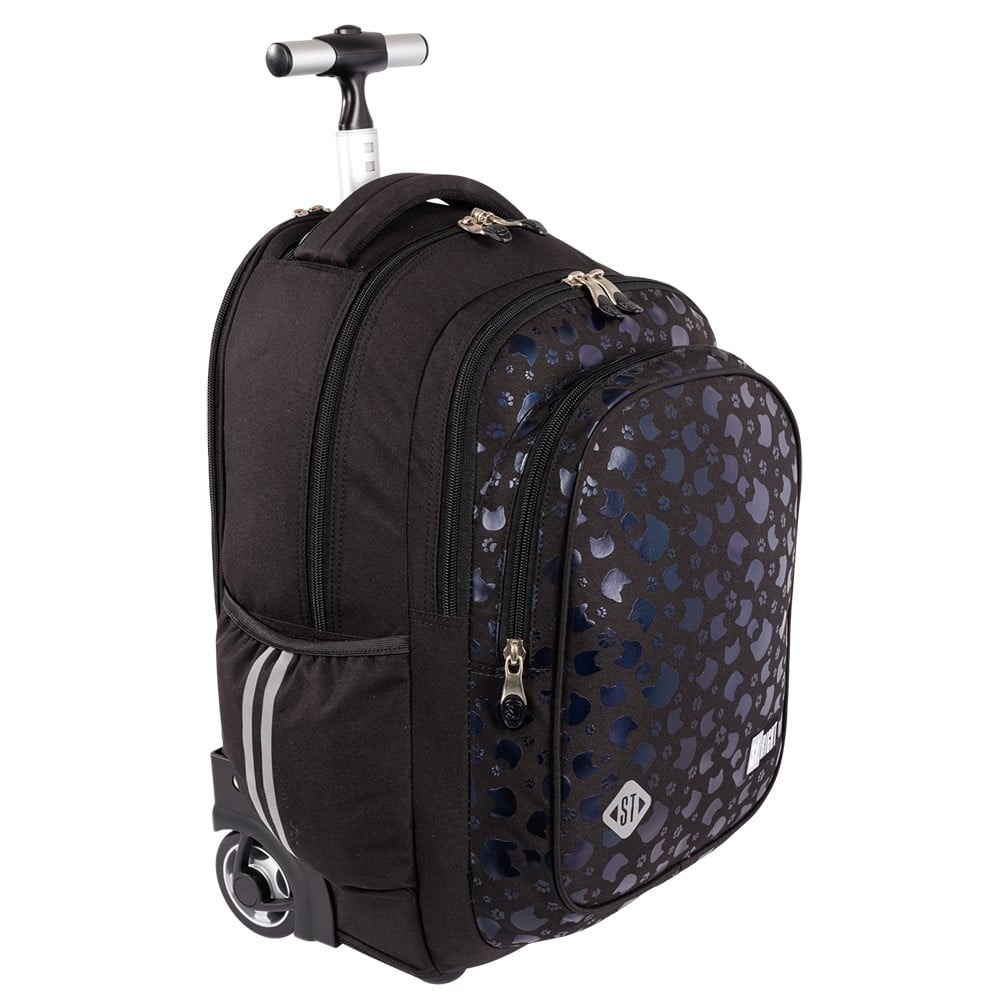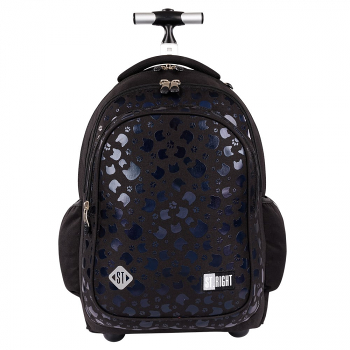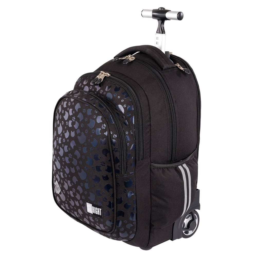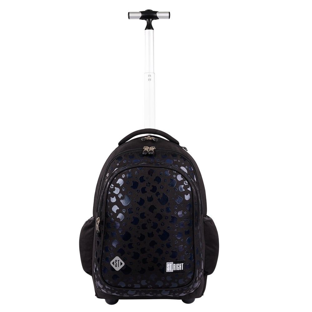 Perfect pentru școală și călătorii! Ghiozdanul St.Right tip Troler, cu design Black Cats, oferă o soluție practică și stilată pentru transportul obiectelor, datorită compartimentării inteligente, mânerului telescopic și roților din silicon.