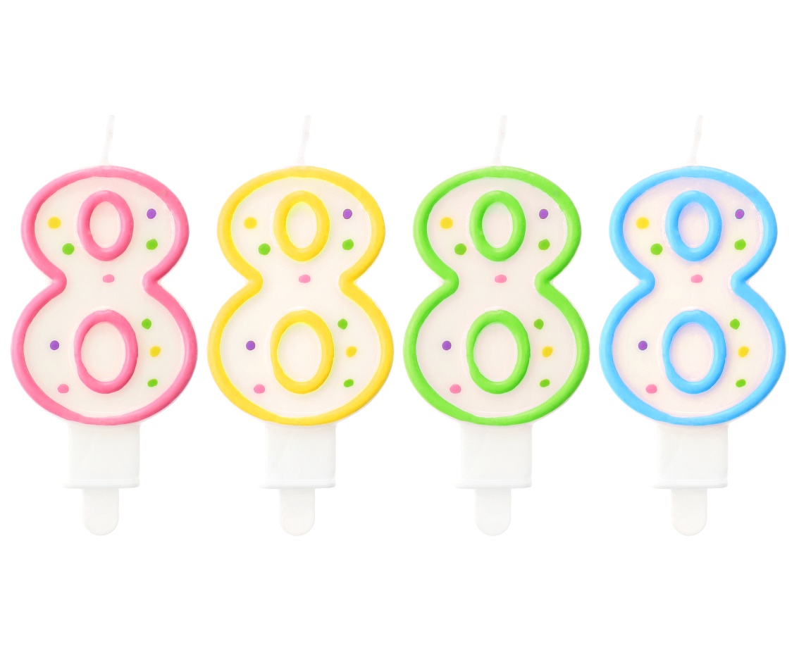 Vrei sa decorezi un tort intr-un mod simplu, rapid si eficient? Alege lumanari pentru ziua de nastere in forma de numere! Lumânarea „8” va sublinia vârsta băiețelului și va fi un decor frumos pentru tort! Lumânarea va funcționa pentru aniversarea a 8-a, dar și în combinație cu alte lumânări cu numere, puteți crea un număr pentru 18, 28, 38!