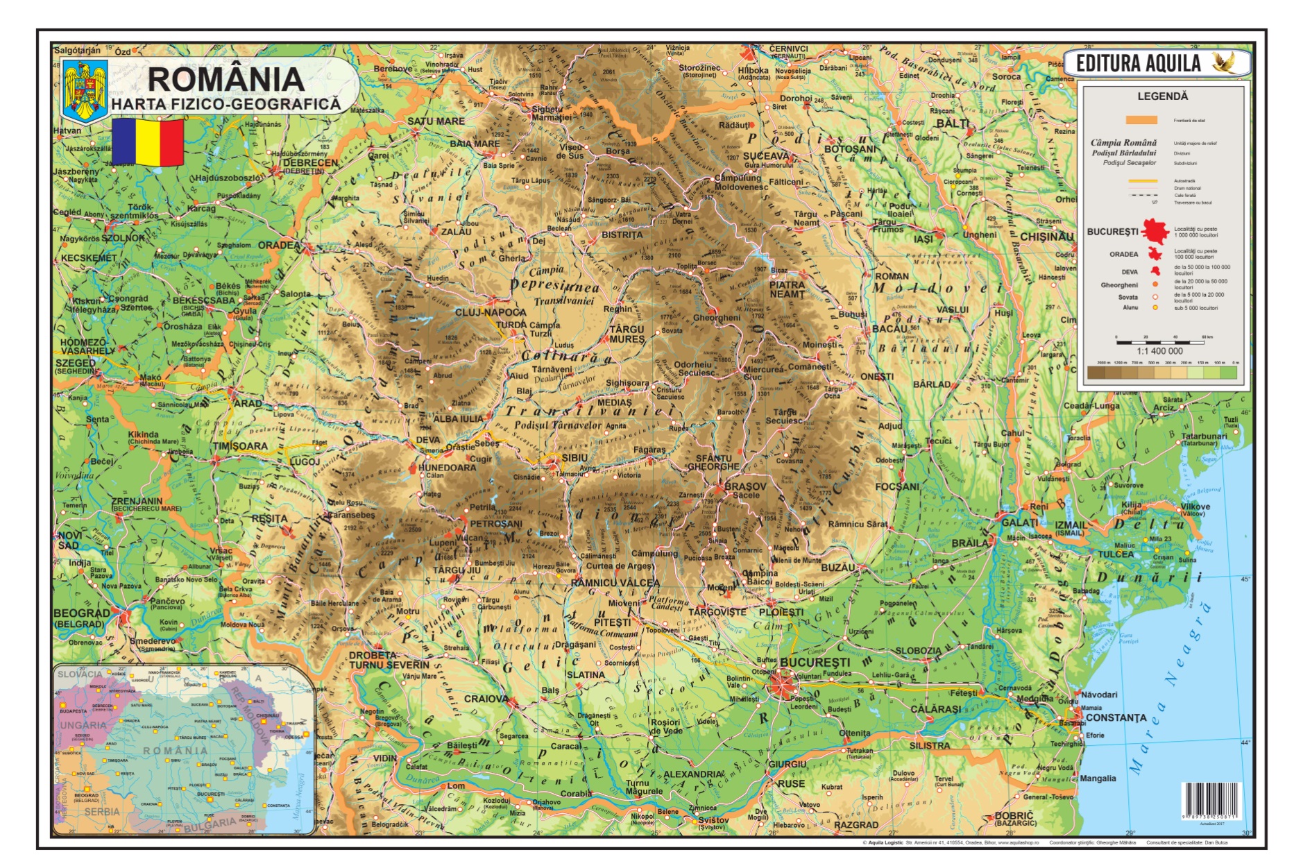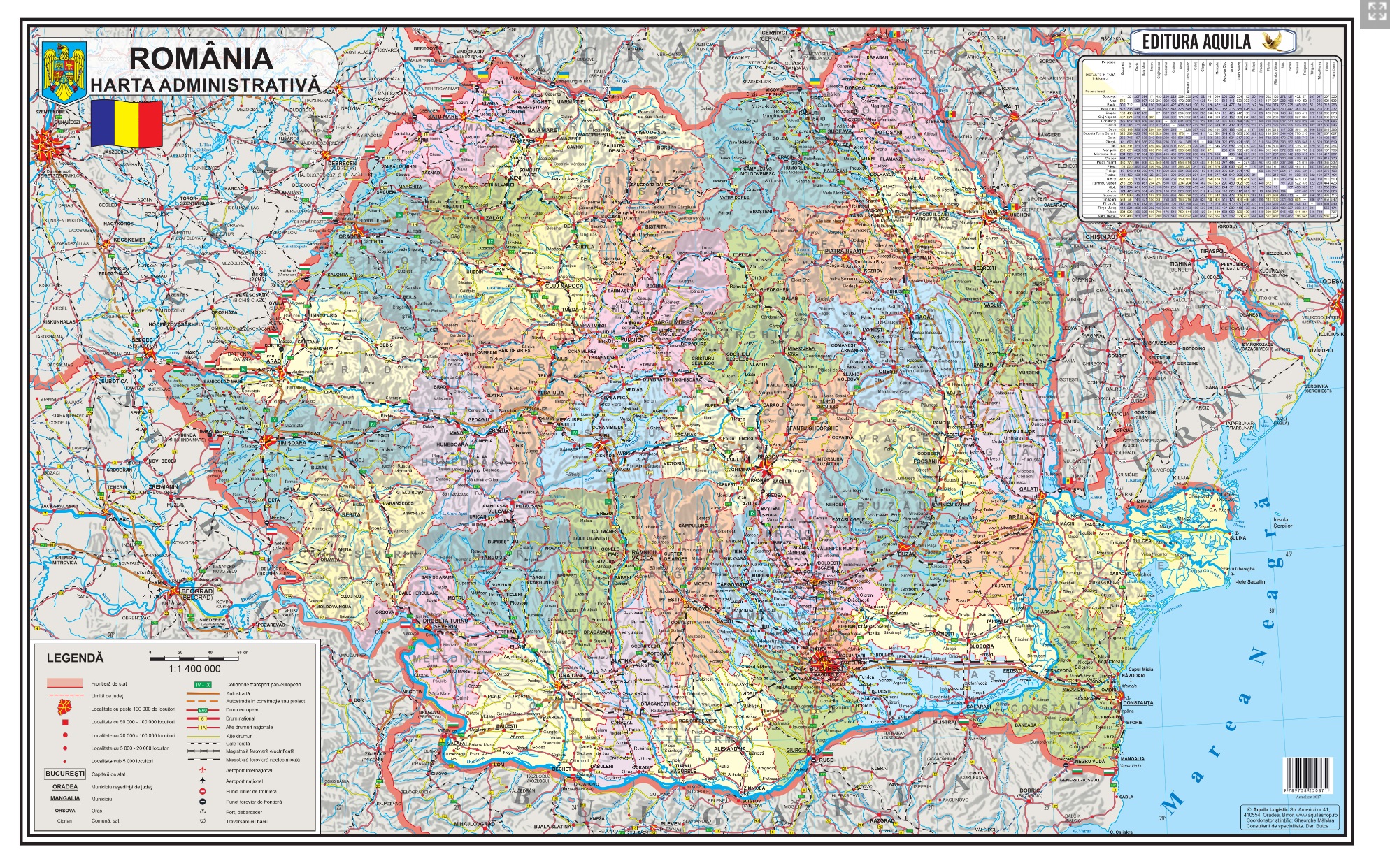 HARTA ROMÂNIEI 70*100 - Harta fizică și administrativă a României, față-verso, în dimensiuni de 70x100 cm, pentru o reprezentare clară și detaliată a țării tale!