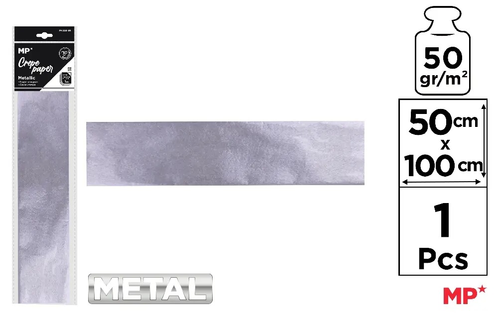 HARTIE CREPONATA IPB 50*100CM 50GR GRI METALIZAT PN223-01 - Hârtie Creponată cu Aspect Metalizat