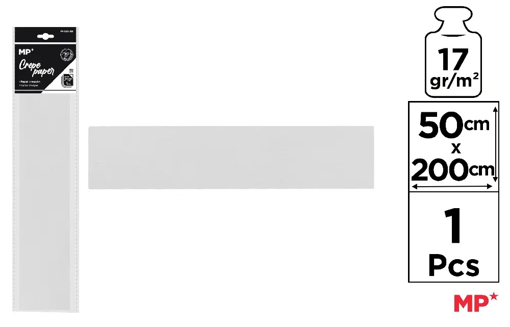 HARTIE CREPONATA IPB 50*200CM 17GR ALB PN222-02 - Hârtie Creponată Albă pentru Proiecte Creative