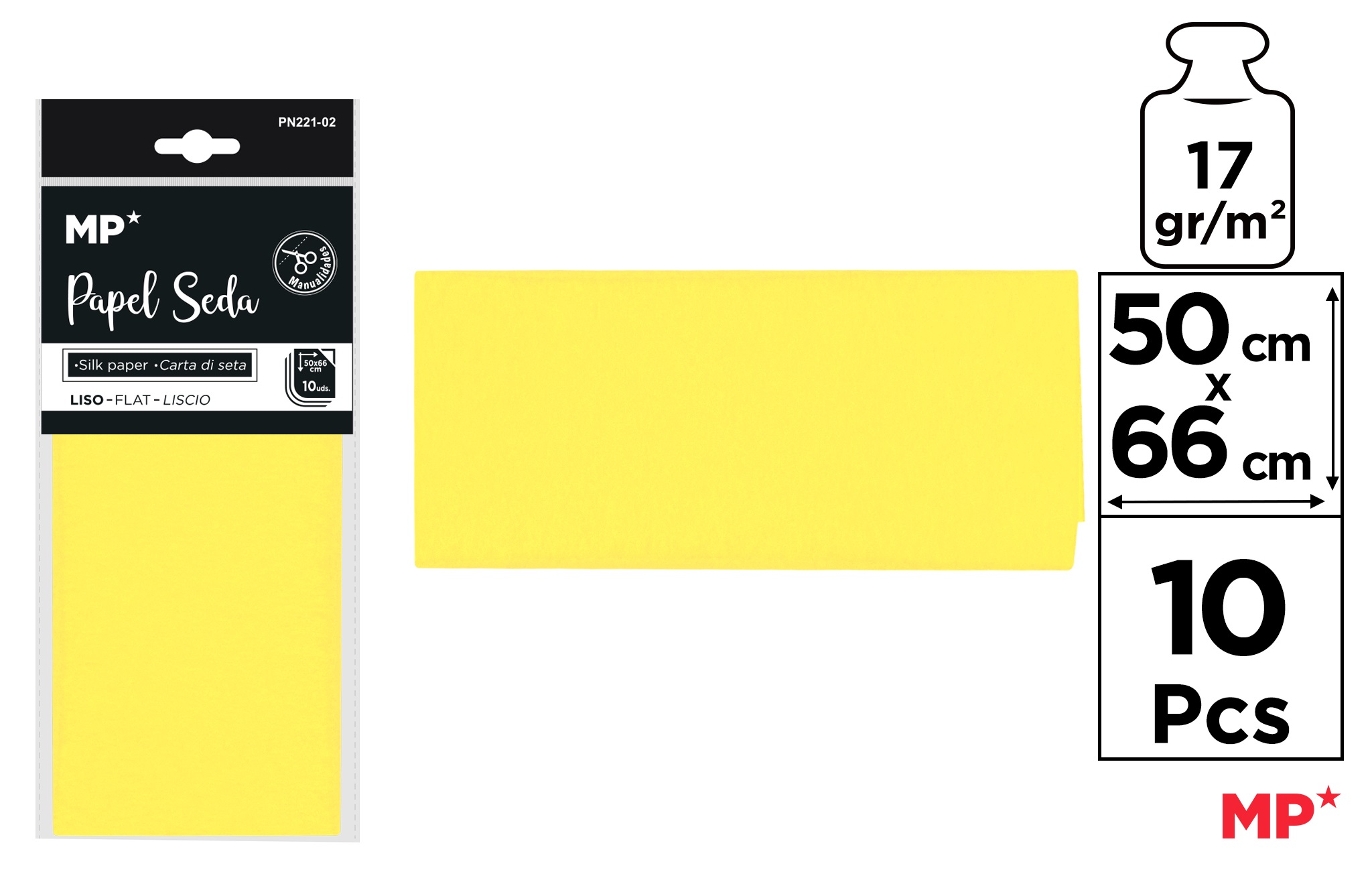 Silk paper for crafts, decoration and school use.17g/m2. Great softness, ideal for wrapping gifts,makingdecorative flowers and all kinds of crafts.Packof 10 sheets. Sheet size: 50 x 60 cm.