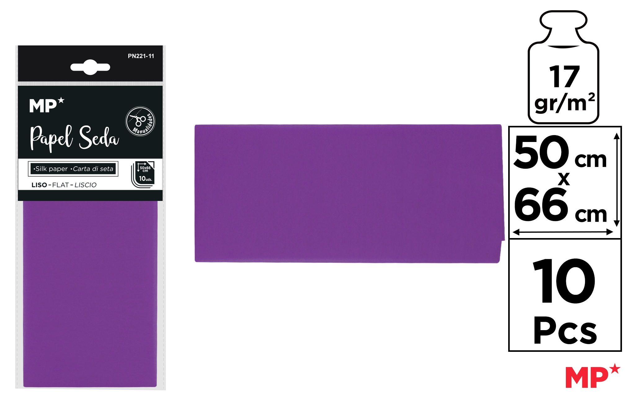 Silk paper for crafts, decoration and school use.17g/m2. Great softness, ideal for wrapping gifts,makingdecorative flowers and all kinds of crafts.Packof 10 sheets. Sheet size: 50 x 60 cm.