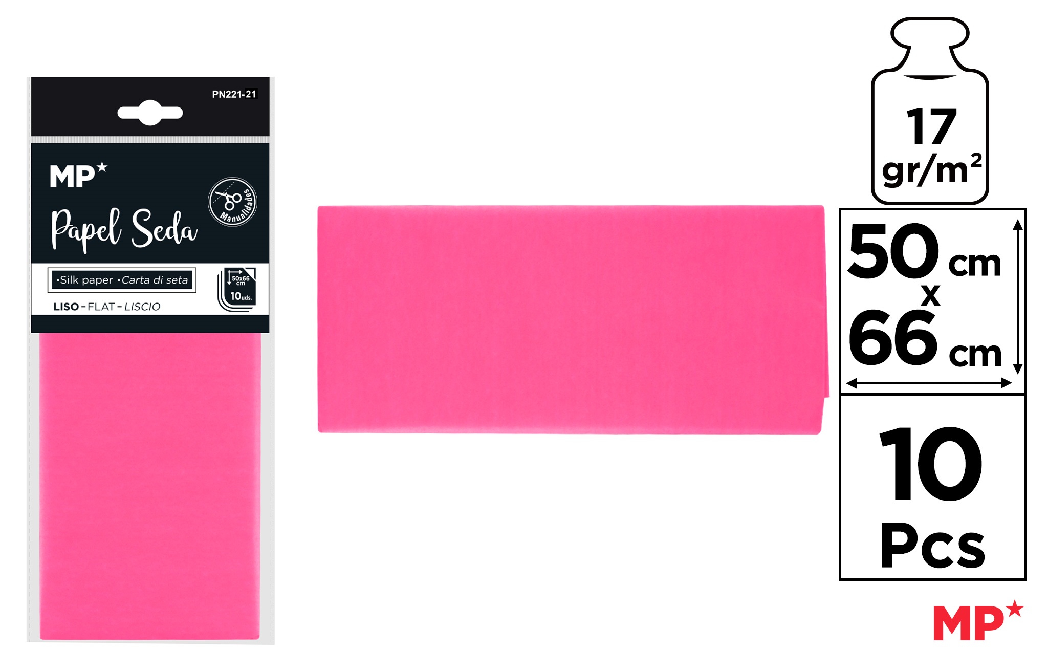 Silk paper for crafts, decoration and school use.17g/m2. Great softness, ideal for wrapping gifts,makingdecorative flowers and all kinds of crafts.Packof 10 sheets. Sheet size: 50 x 60 cm.