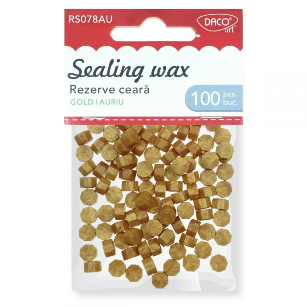 Etichete: Daco Rezervă Ceară Sigiliu Aurie 26-30g RS078AU, rezervă de ceară aurie, greutate între 26 și 30 de grame, pentru sigilarea corespondenței, aspect elegant și rafinat, utilizare cu sigilii tradiționale