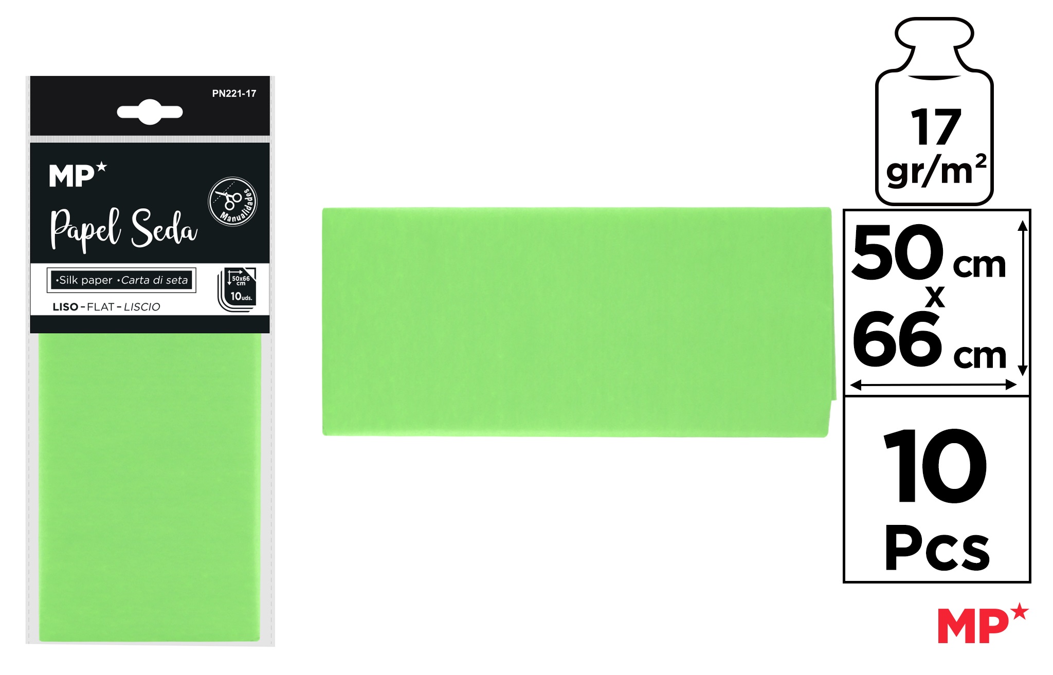 Silk paper for crafts, decoration and school use.17g/m2. Great softness, ideal for wrapping gifts,makingdecorative flowers and all kinds of crafts.Packof 10 sheets. Sheet size: 50 x 60 cm.
