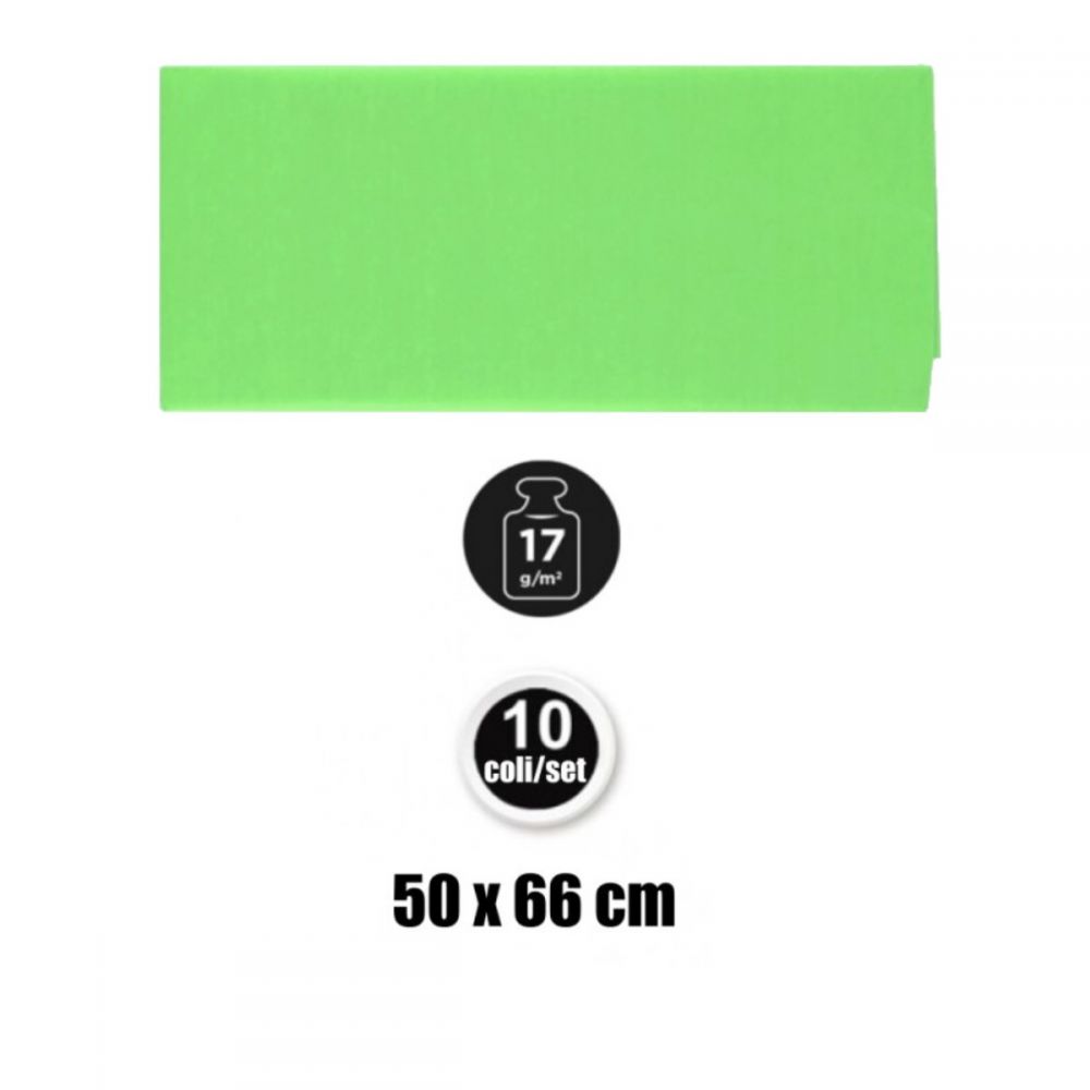 Hartie de matase fina si delicata, semitransparenta, potrivita pentru decoratiuni, confectionare flori si coronite, ambalare cadouri, buchete flori, etc. Dimensiune: 50x66 cm. Pretul se refera la un set de 10 bucati.