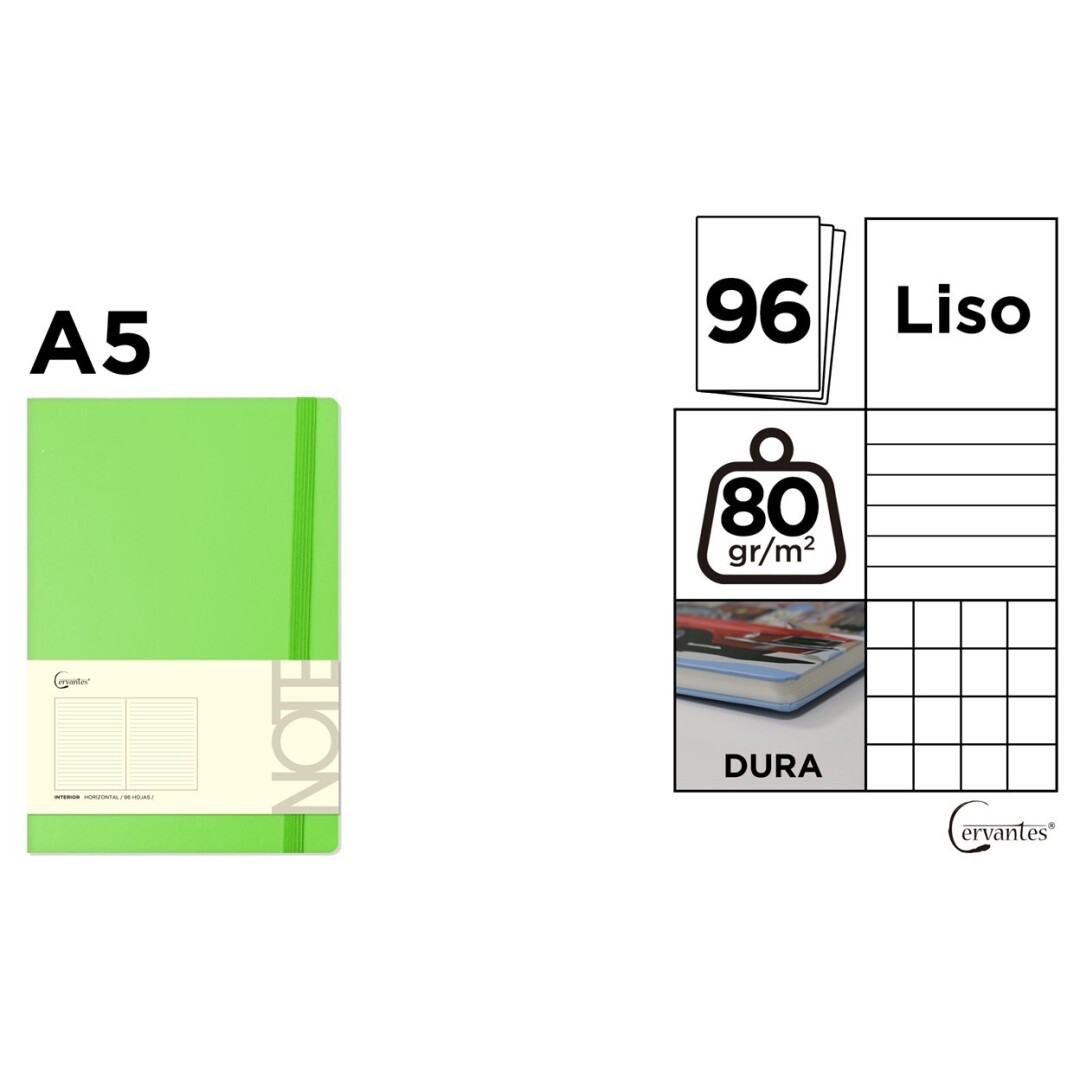 NOTES IPB A5 CERVANTES CU ELASTIC 96F VERDE LIME AR/ DR/ VE PB686