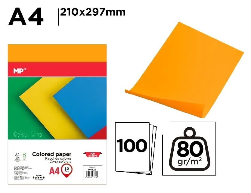 Hartie Colorată IPB A4 80gr 100/set Portocaliu Intens PN328, Hârtie Multifuncțională Colorată pentru Copiere A4 80 g/m² Portocaliu Intens