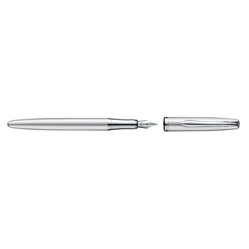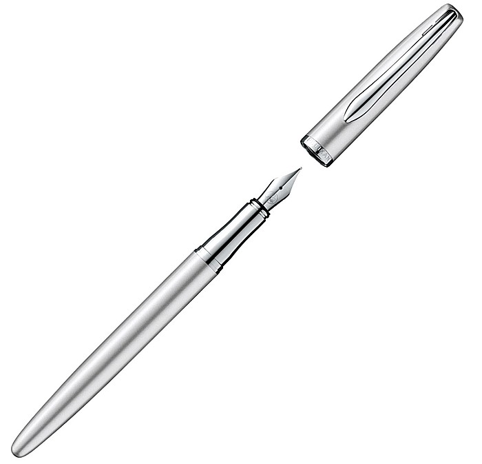 Fountain pen Jazz Noble Elegance P36 Silver Box Pelikan fountain pen Jazz® Noble Elegance P36 Silver The elegant Jazz metal fountain pen is characterized by its curved lines, which makes the pen light and lively. The pearl lacquered upper and lower barrel perfectly harmonize with the tone in tone colored tip, ring and clip. The typical Pelikan beak shaped clip is spring-loaded and therefore particularly robust. The smooth ink supply is ensured by the convenient cartridge filling mechanism which makes the Jazz fountain pen easy to use. The polished stainless-steel nib in M-size is suitable for handwritings with bigger swings. USP Fountain pen with cartridge filling system; Pearl lacquered upper and lower barrel; Colored clip, ring and grip; Robust clip due to spring mounted installation; Equipped with replaceable king-size refill; Ink color royal blue