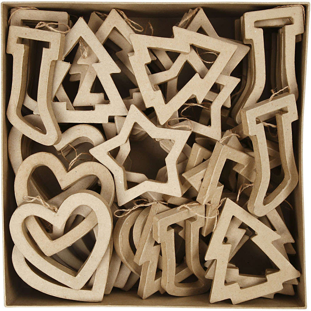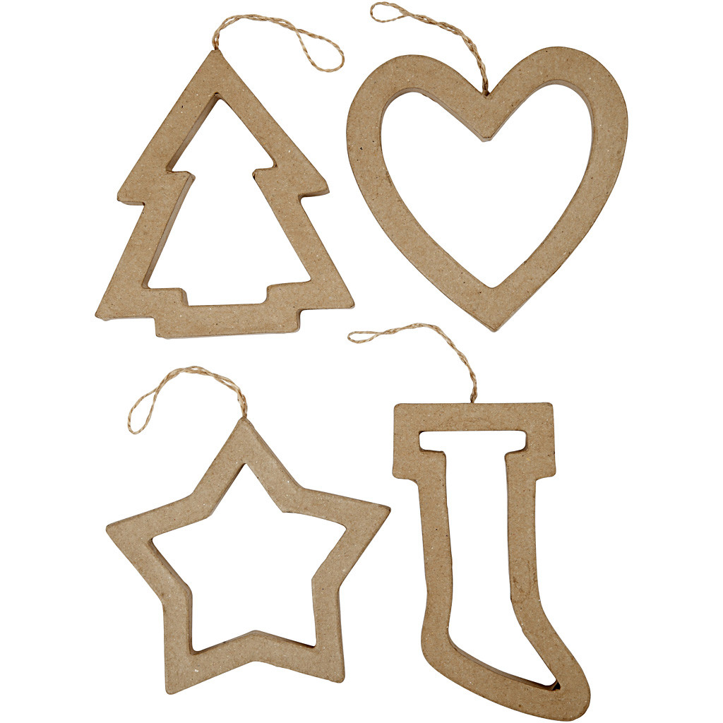 Christmas ornaments made of papier-mâché with jute string for hanging