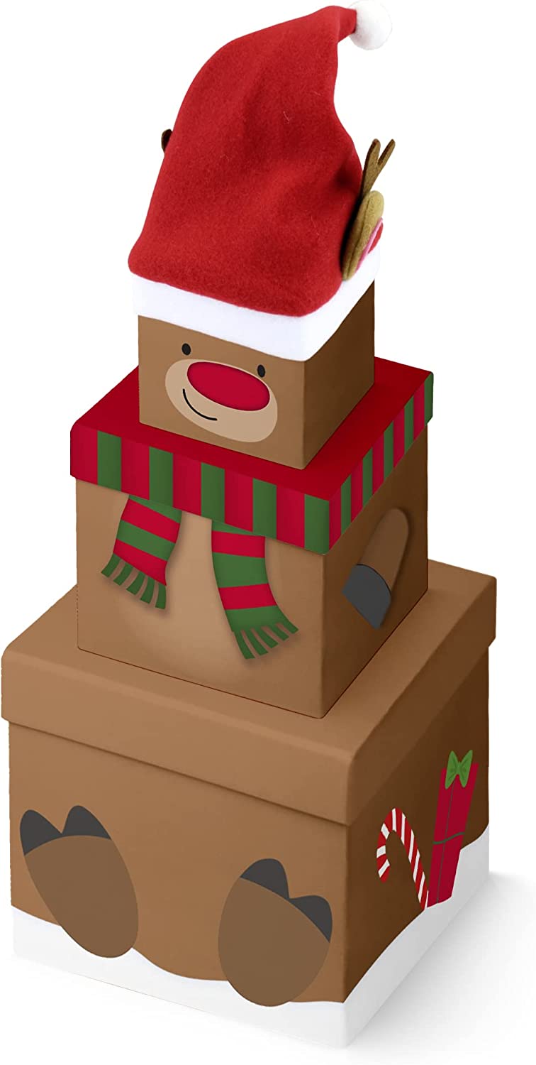 DESIGN: Stivuiți cele 3 cutii pentru a forma un ren. Finisaj moale la atingere. Acest lot ofera cutii pentru copii cu un design distractiv si estetic. Realizate din carton, cutiile sunt rigide si rezistente la socuri. Cutii imprimate pe hartie pentru o randare optima