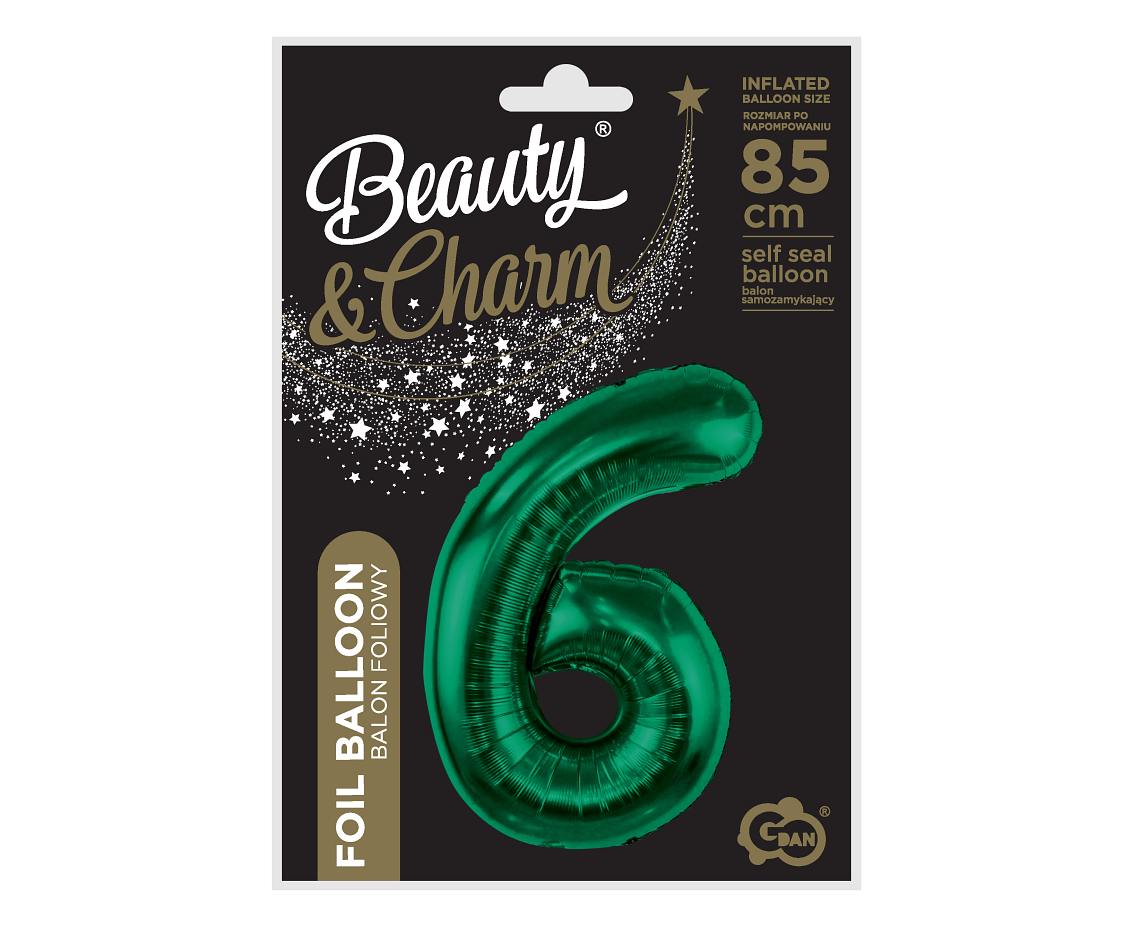 Etichete: Verde Sticlă, Beauty&Charm, GoDan, Rozmiar 85 cm, Fără nadruk, 1 buc., Destinate umplerii cu heliu, Supapă autoînchisă, cifra 5