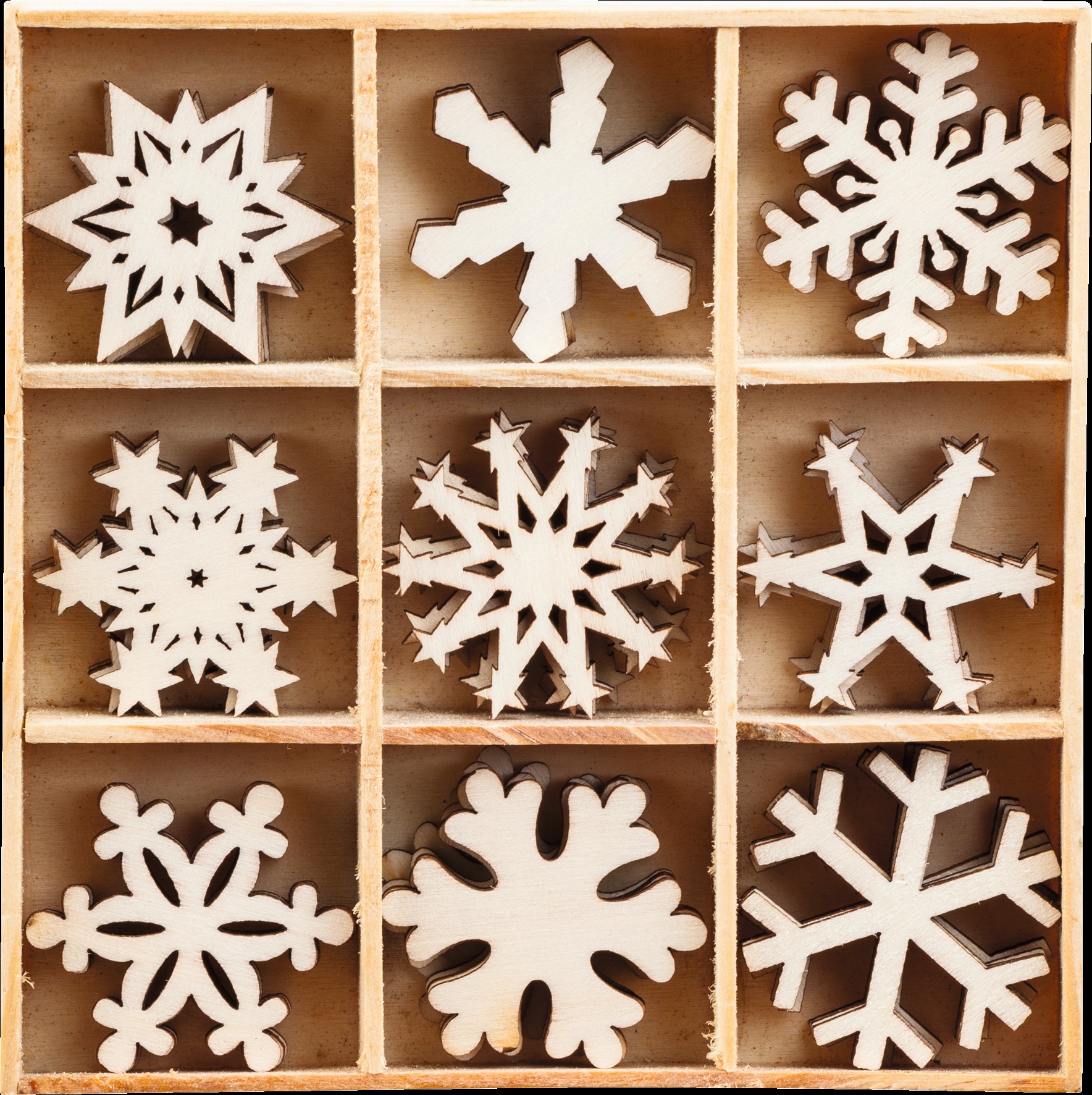 Decorațiuni Lemn Crăciun, 45 Piese, 9 Modele, 3cm, Cod Produs 18521105